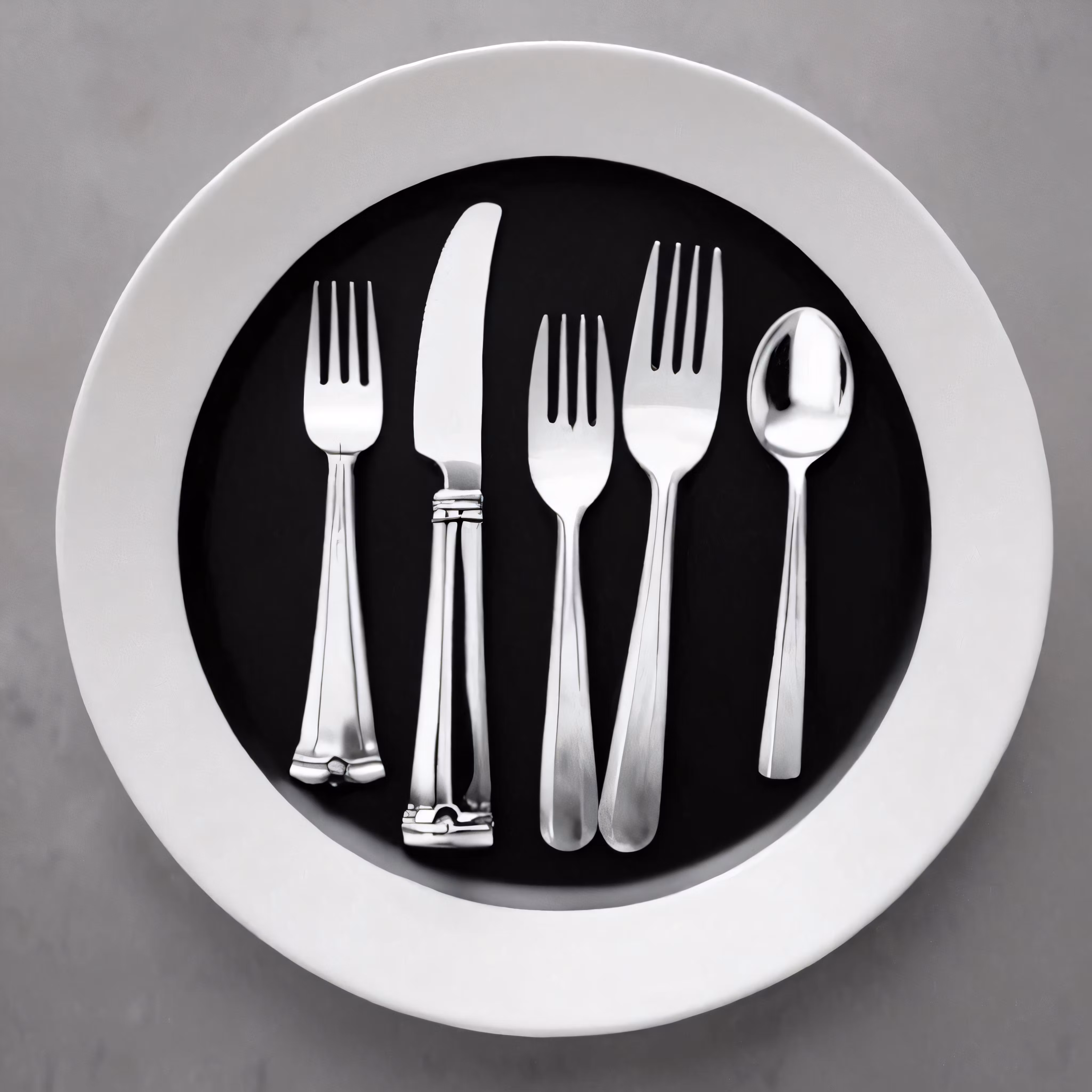 High resolution picture, free to use, a white plate with silverware and forks on it