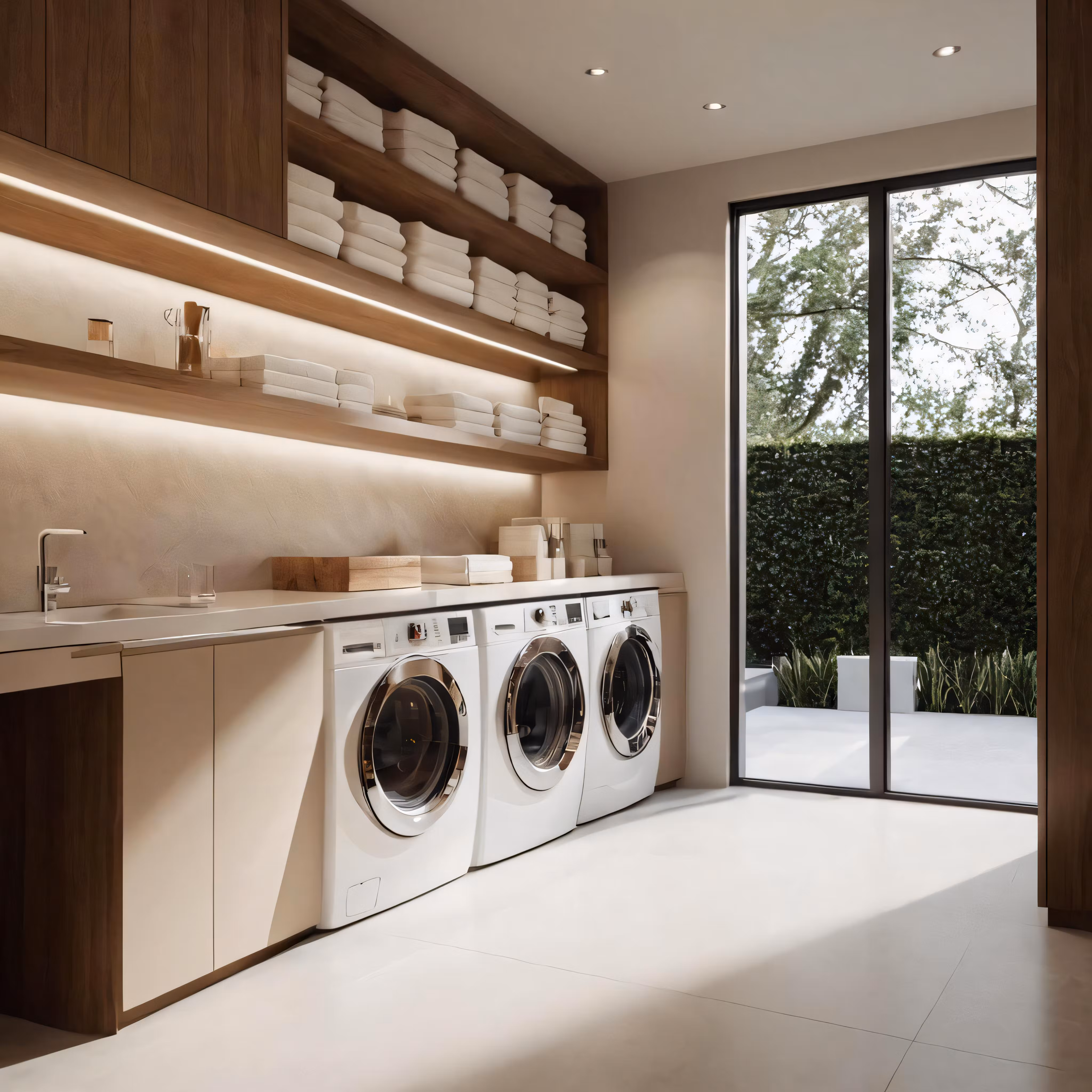 High resolution picture, free to use, a white room has a bunch of laundry items