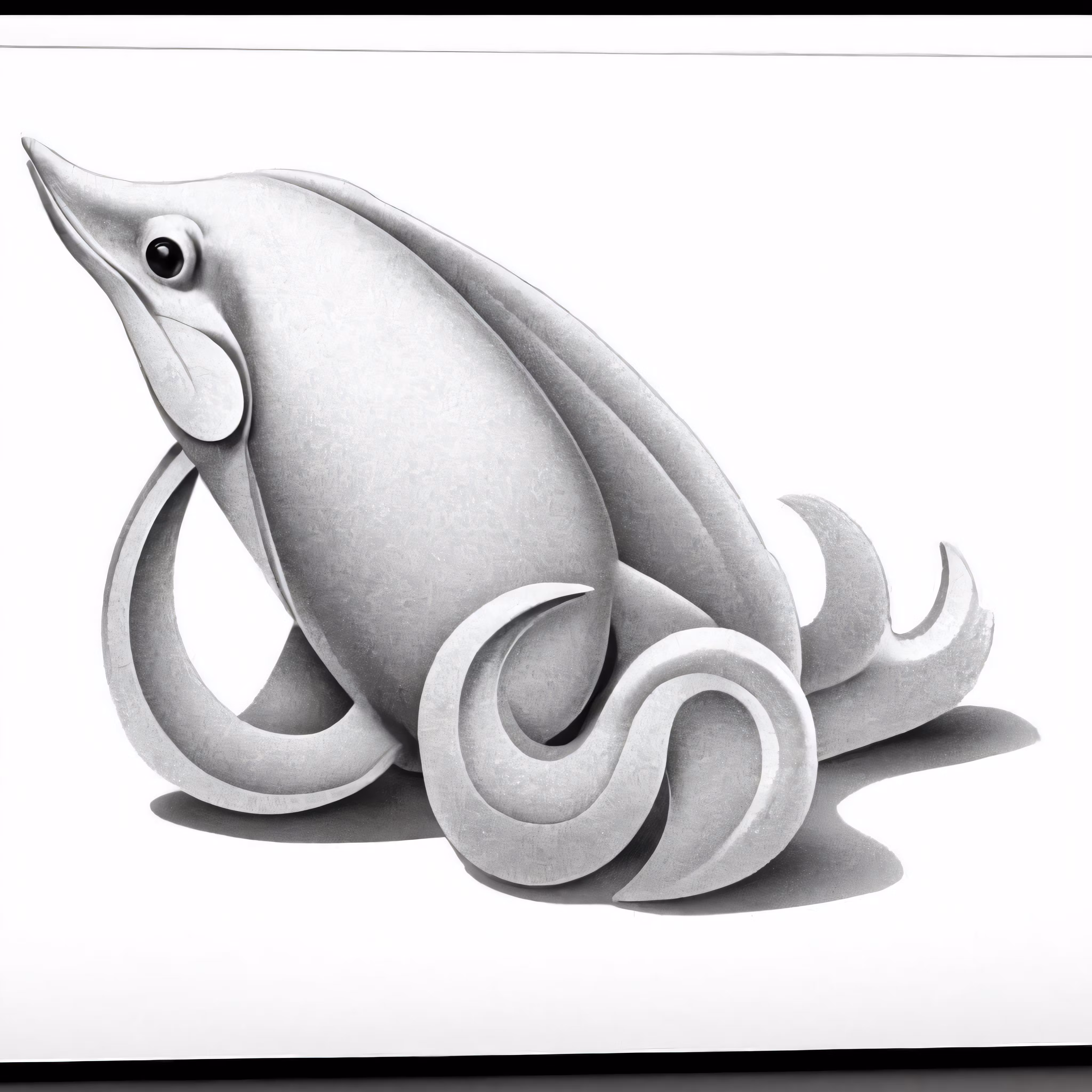 High resolution picture, free to use, a white square paper with a black and white drawing of a squid
