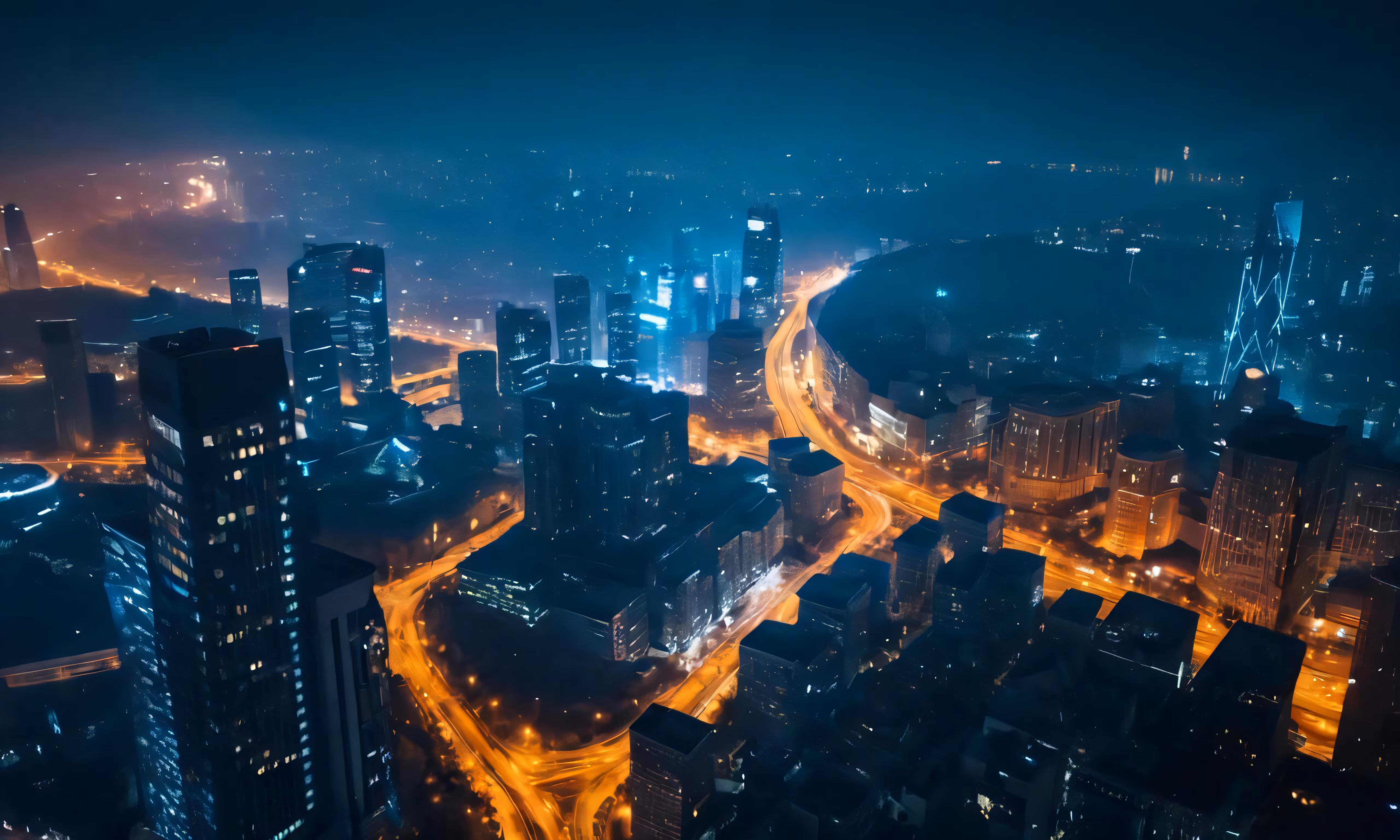 High resolution picture, free to use, a wide shot of a city at night time