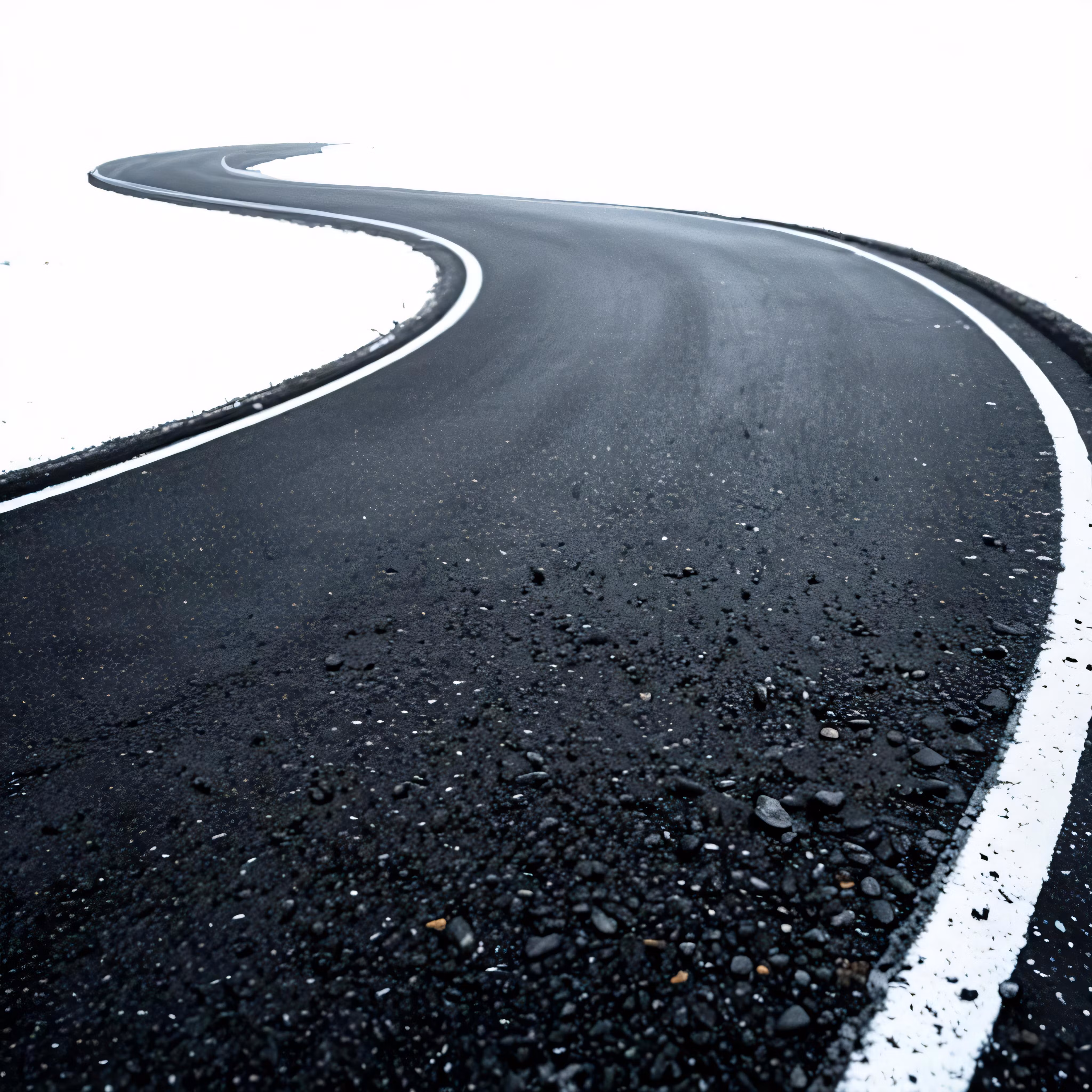 High resolution picture, free to use, a winding road lined by snow and black rocks