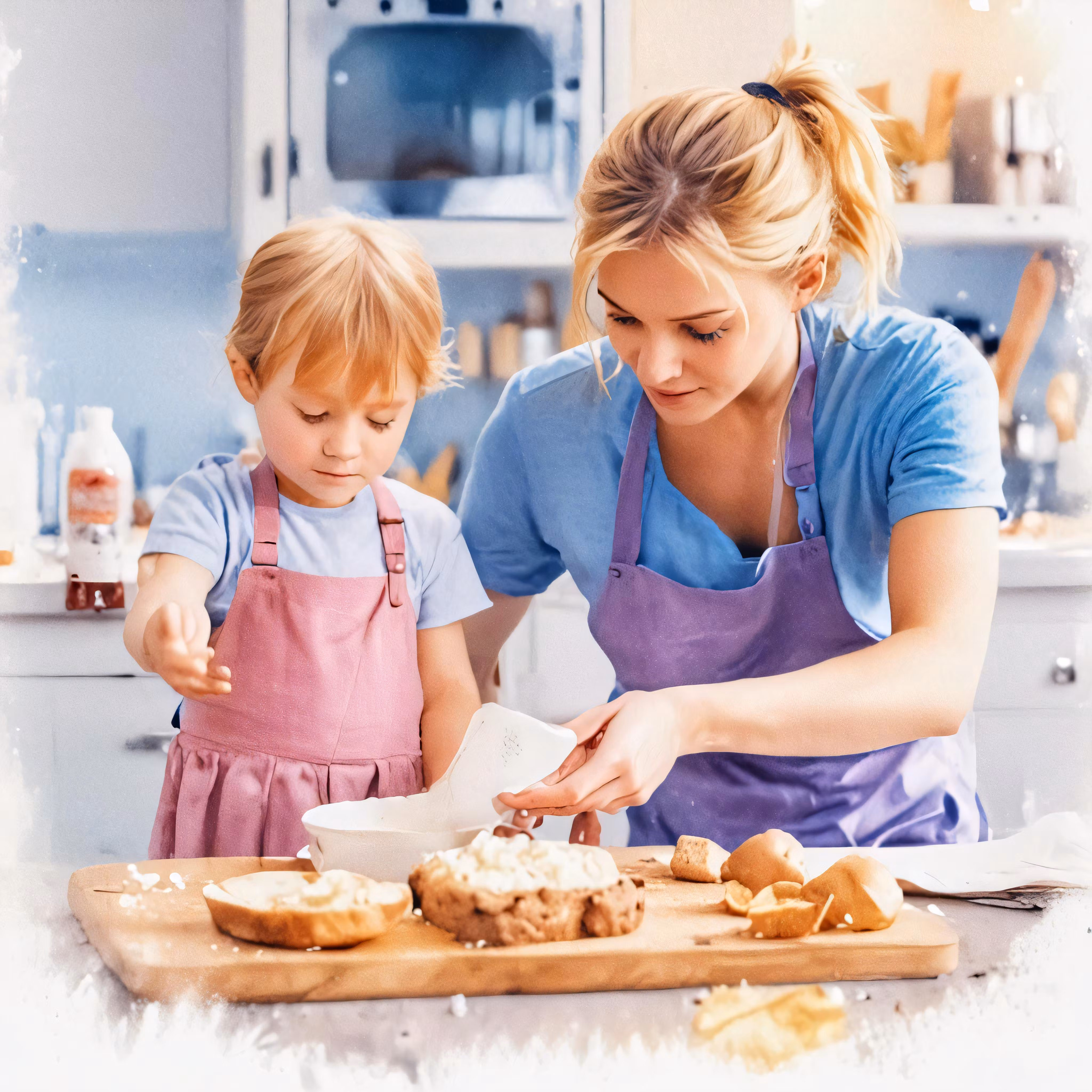 High resolution picture, free to use, a woman and girl in aprons in a kitchen