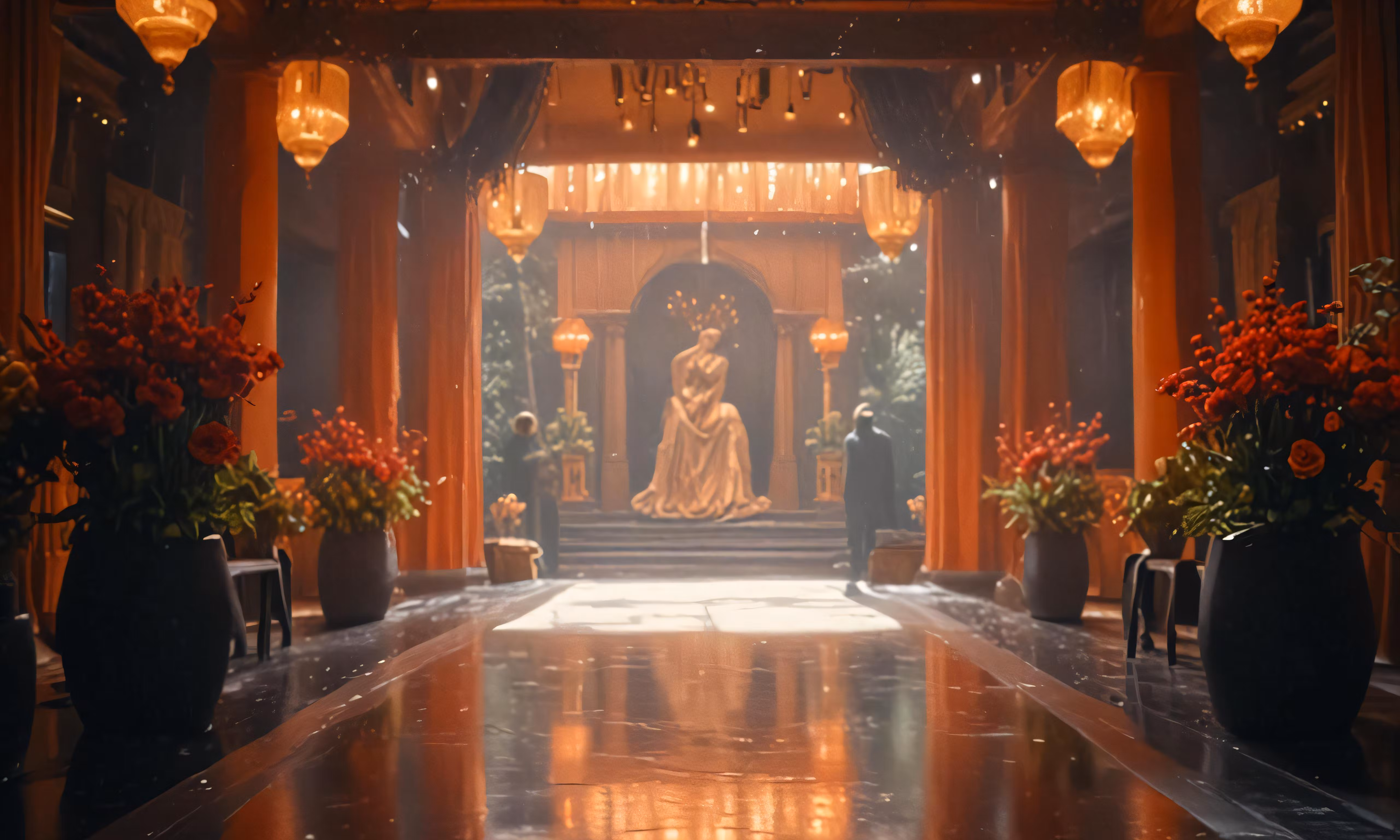 High resolution picture, free to use, a woman dressed in an evening gown walking down the aisle