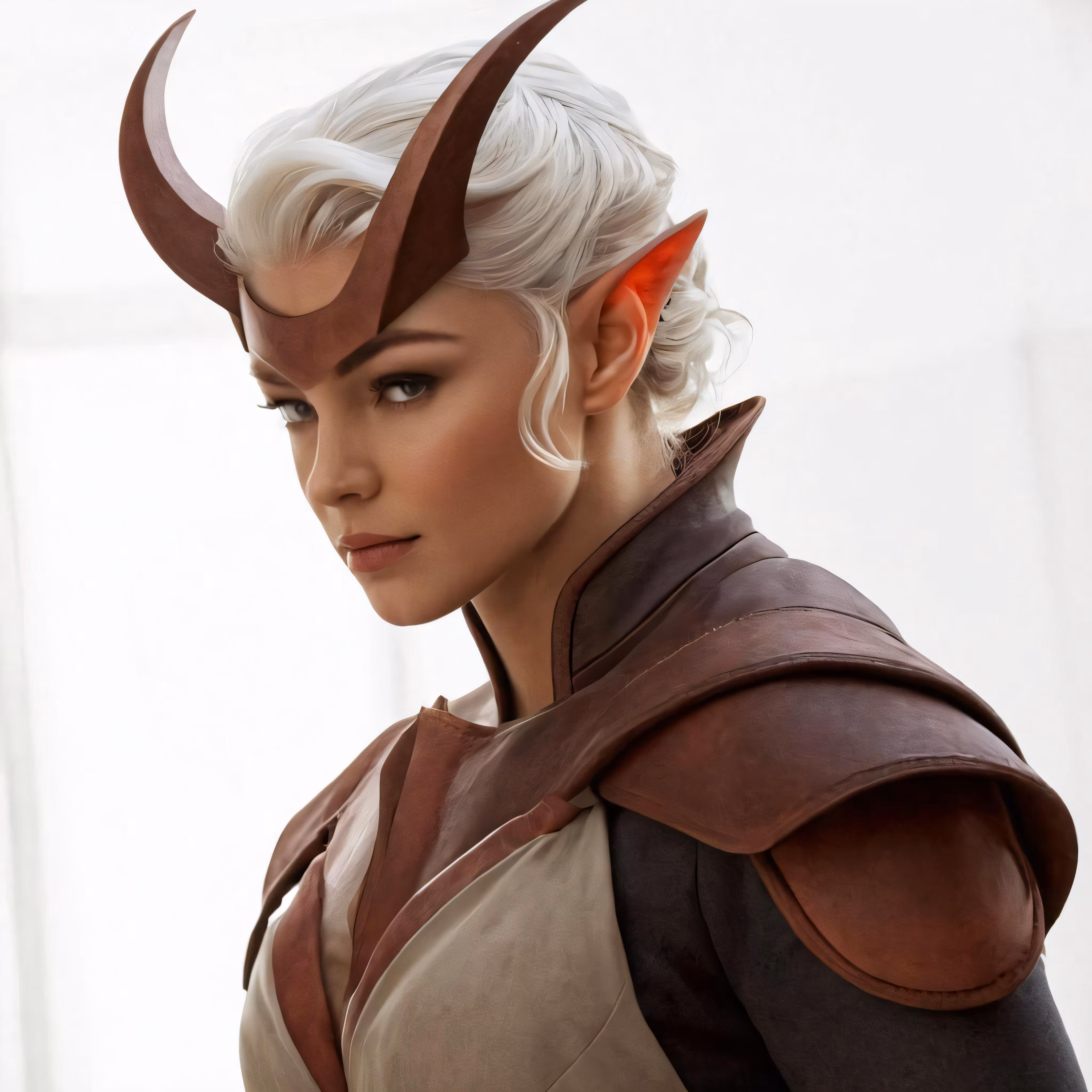 High resolution picture, free to use, a woman dressed in elf garb, looks ahead