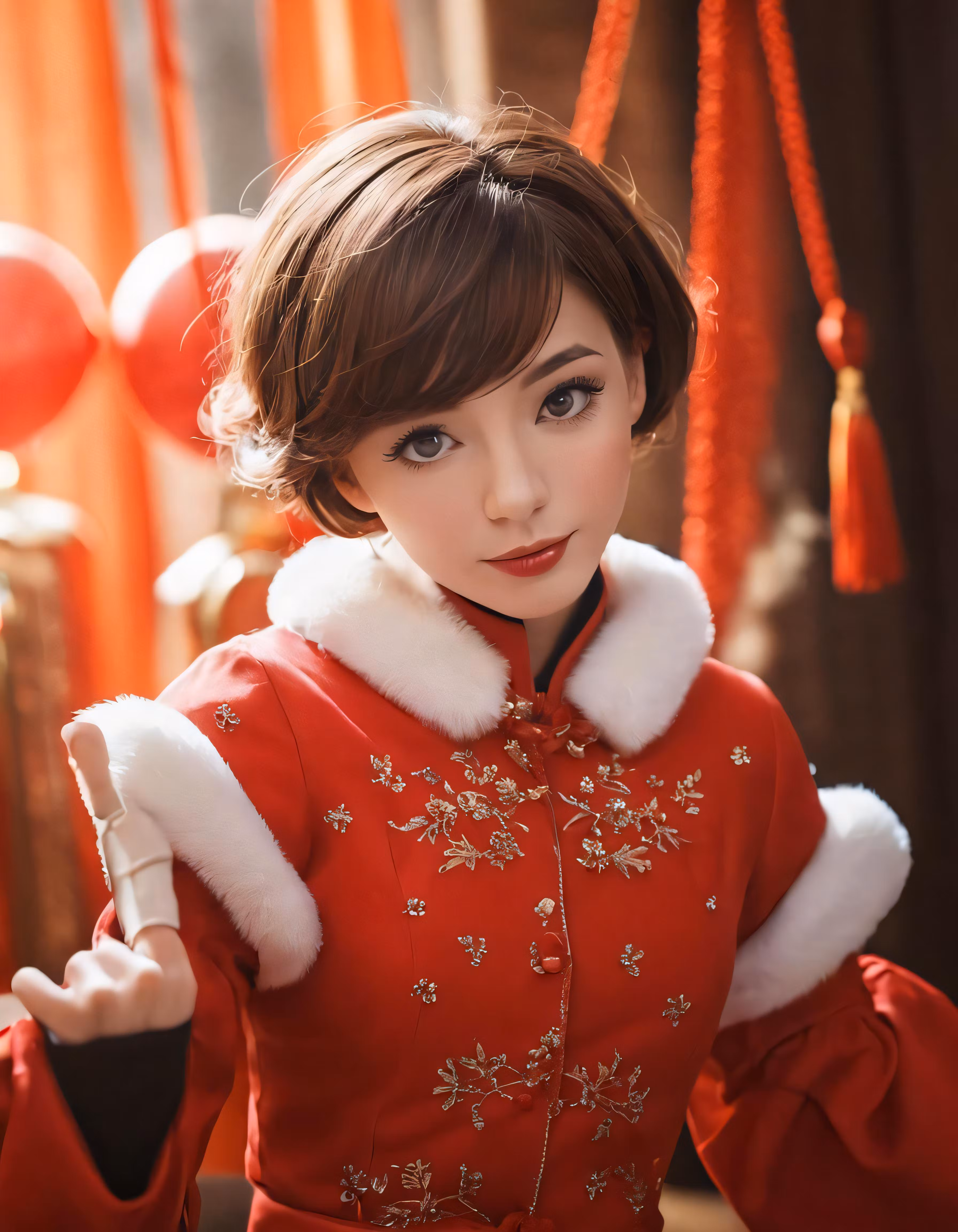 High resolution picture, free to use, a woman dressed in red poses for the camera