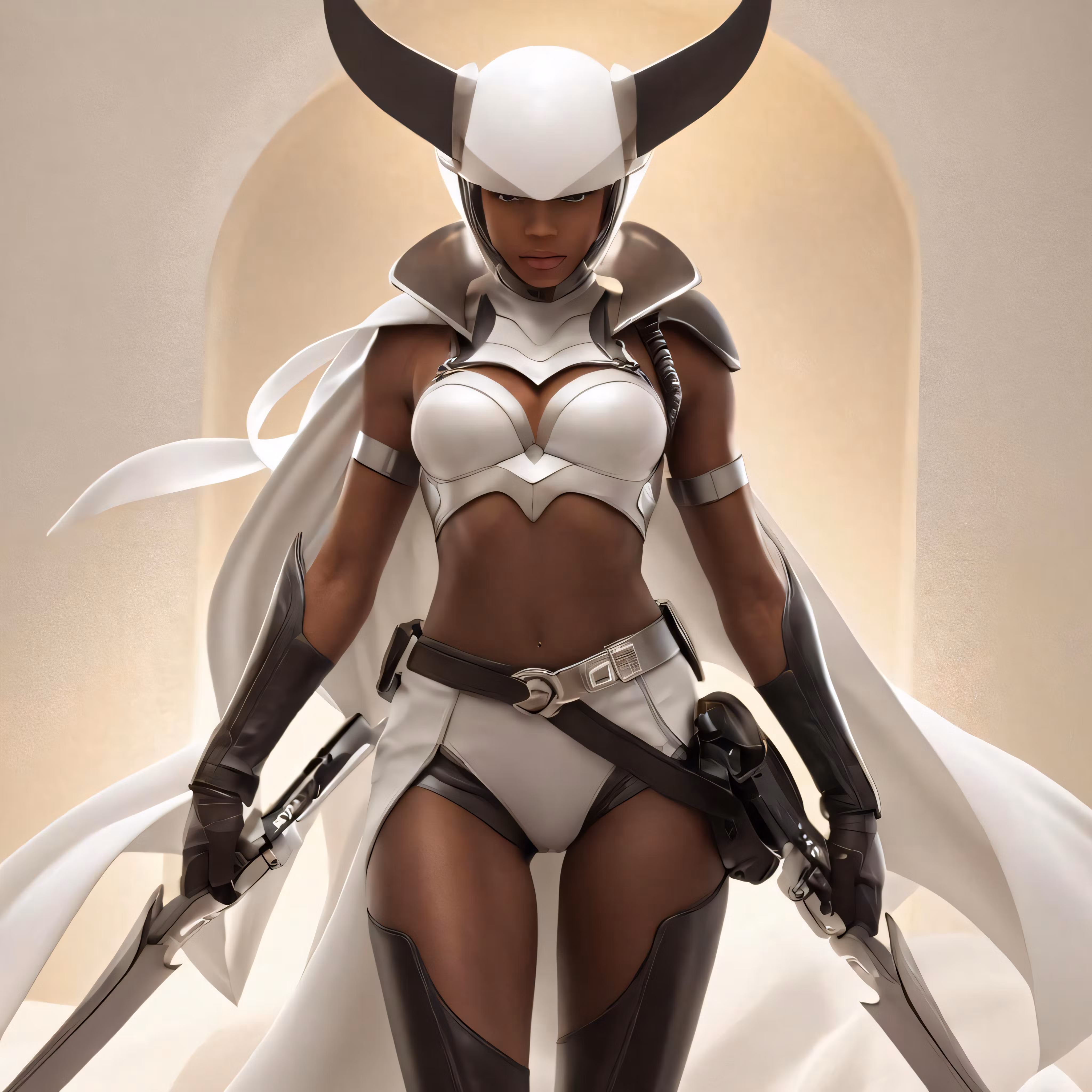 High resolution picture, free to use, a woman dressed in white and black with guns