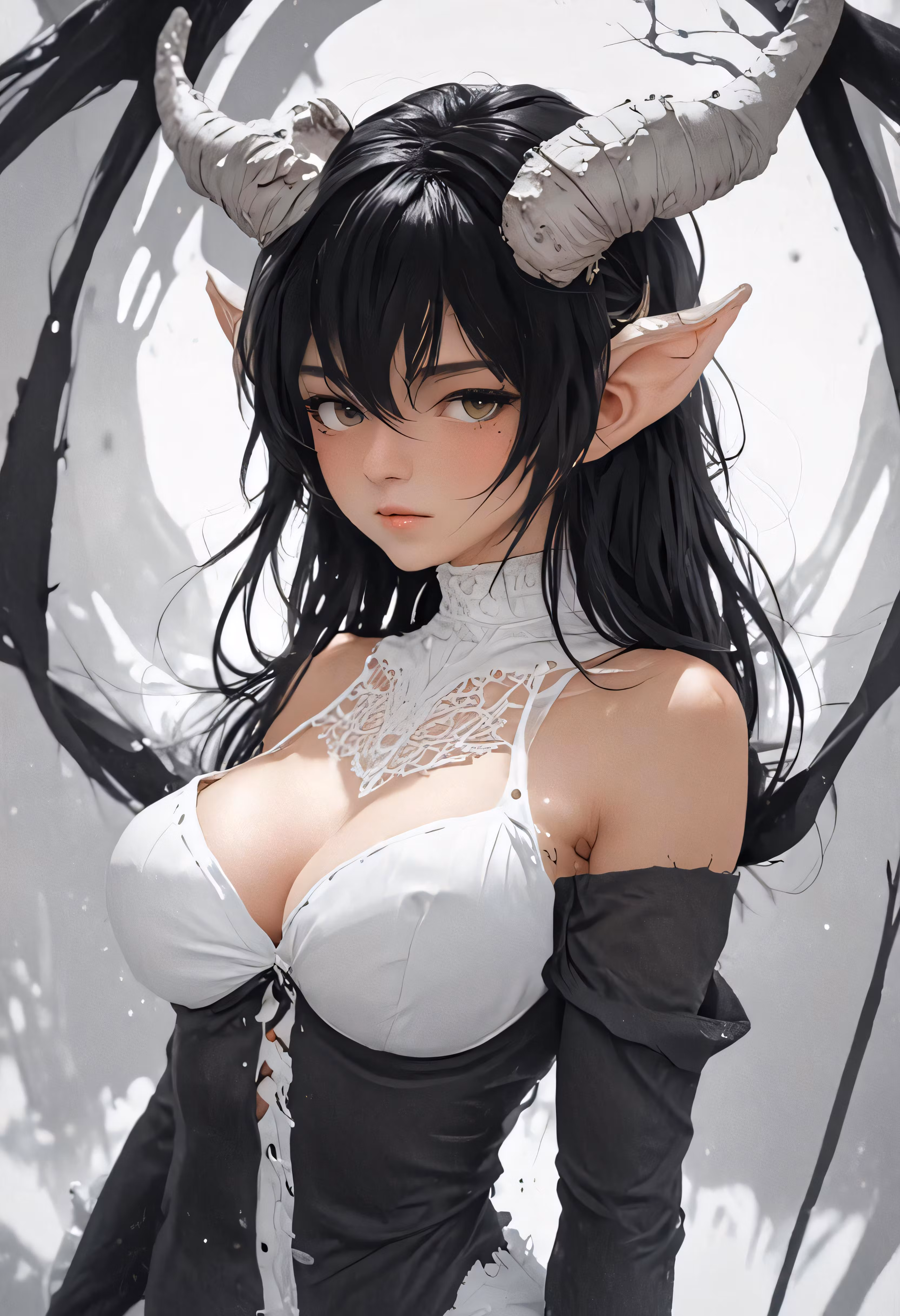 High resolution picture, free to use, a woman dressed up like a demon with horns