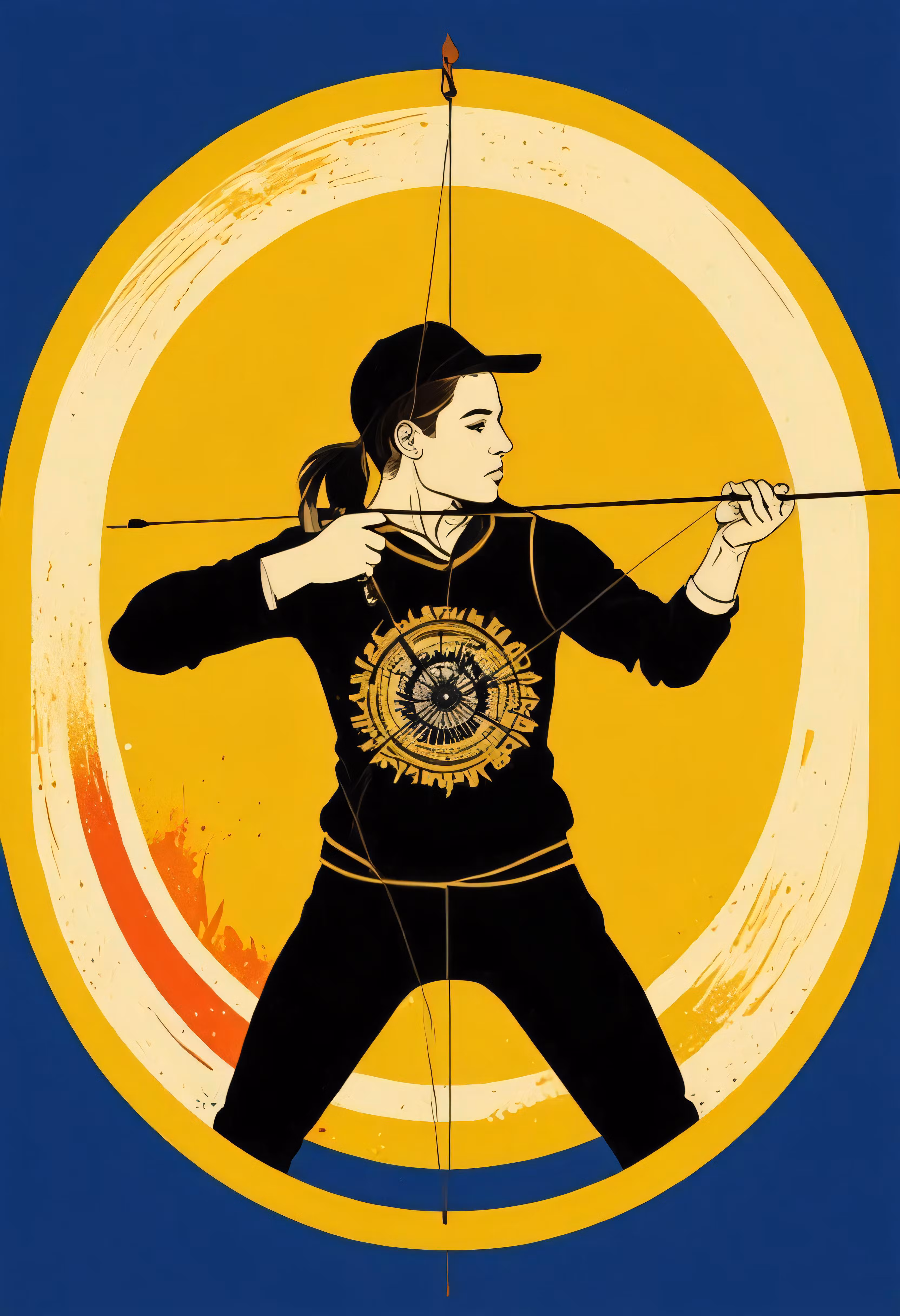 High resolution picture, free to use, a woman holding a bow and aiming the bow with her hand