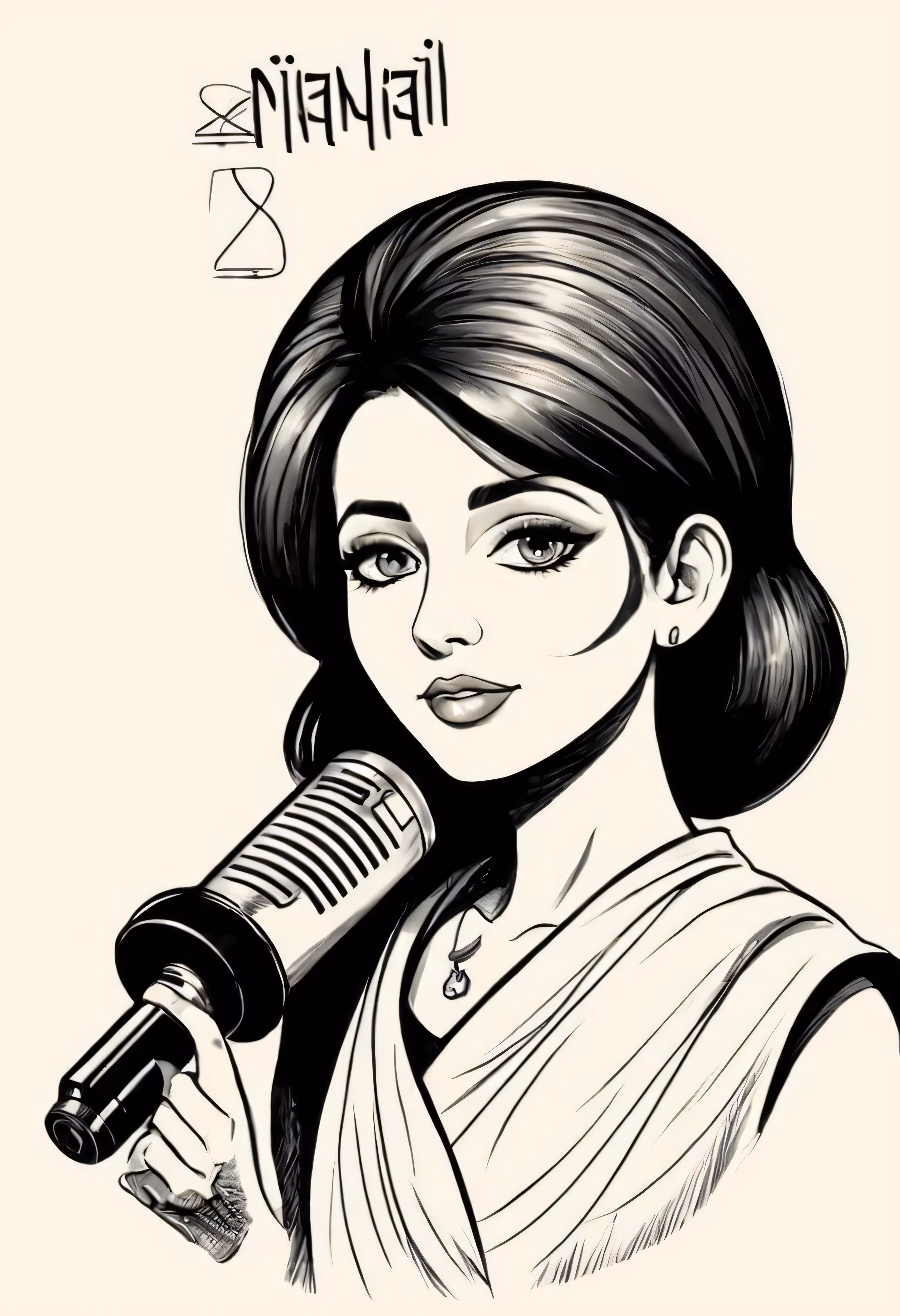 High resolution picture, free to use, a woman holding a microphone while holding it