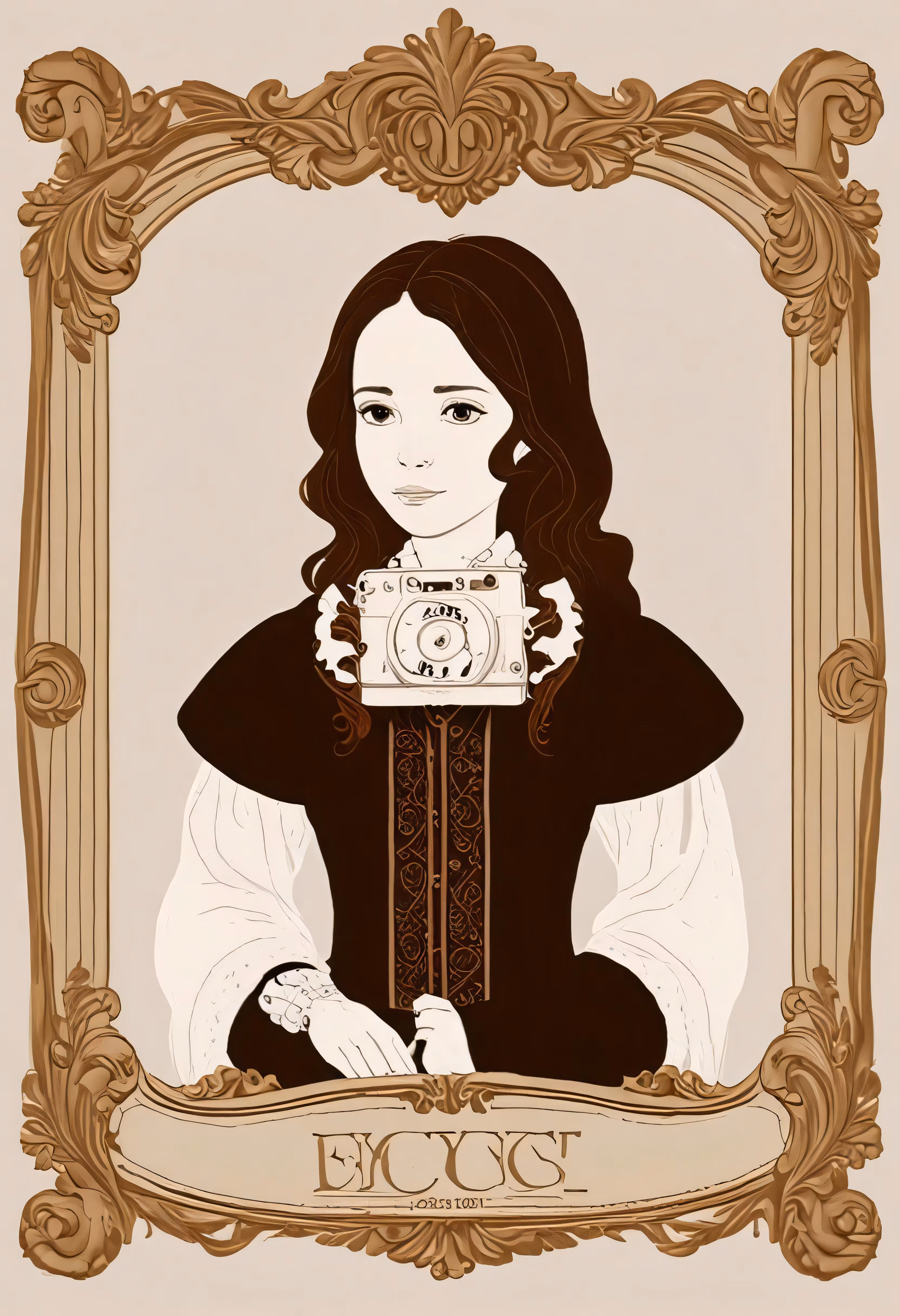 High resolution picture, free to use, a woman holding an old fashioned camera in front of her