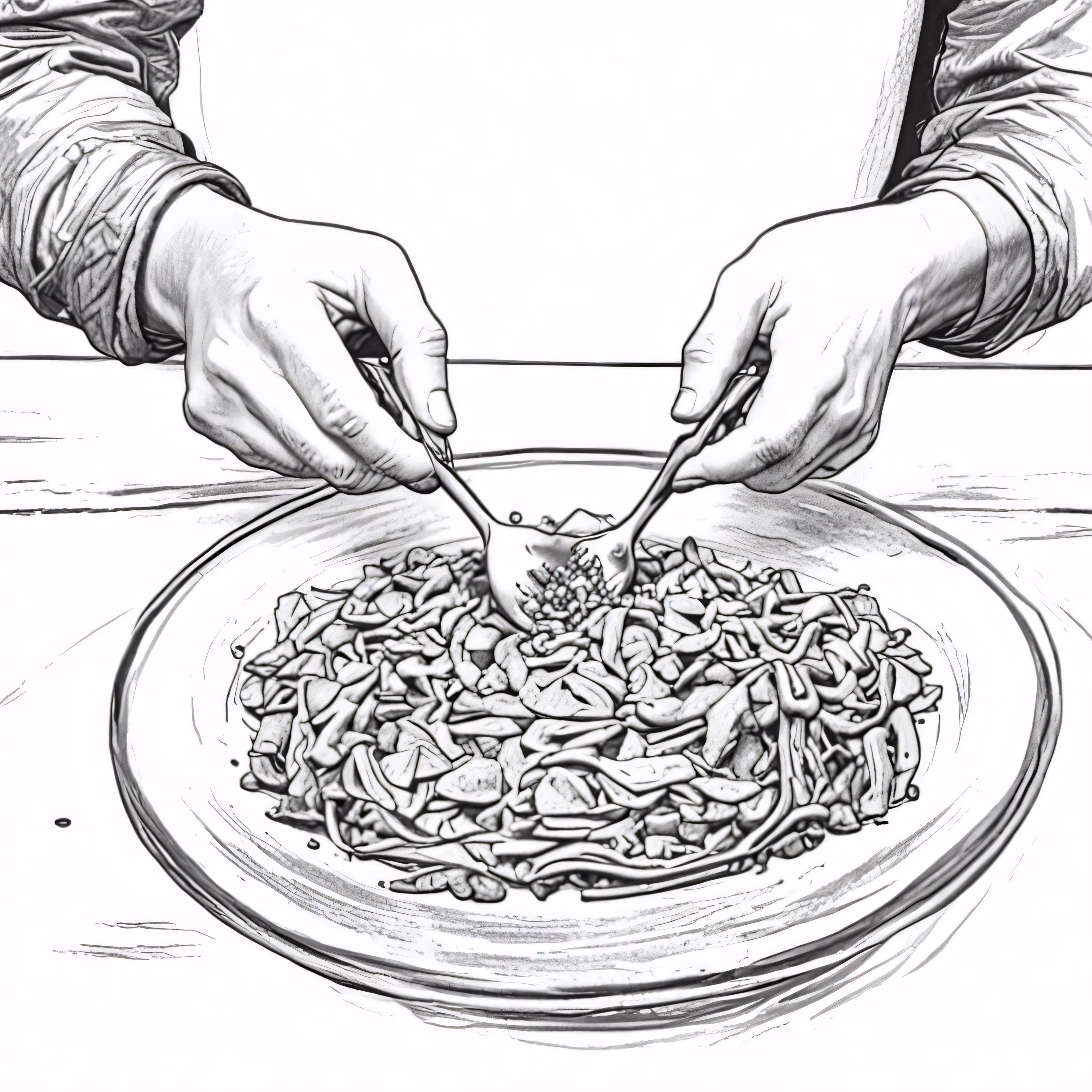 High resolution picture, free to use, a woman holding chopsticks over a plate of noodles