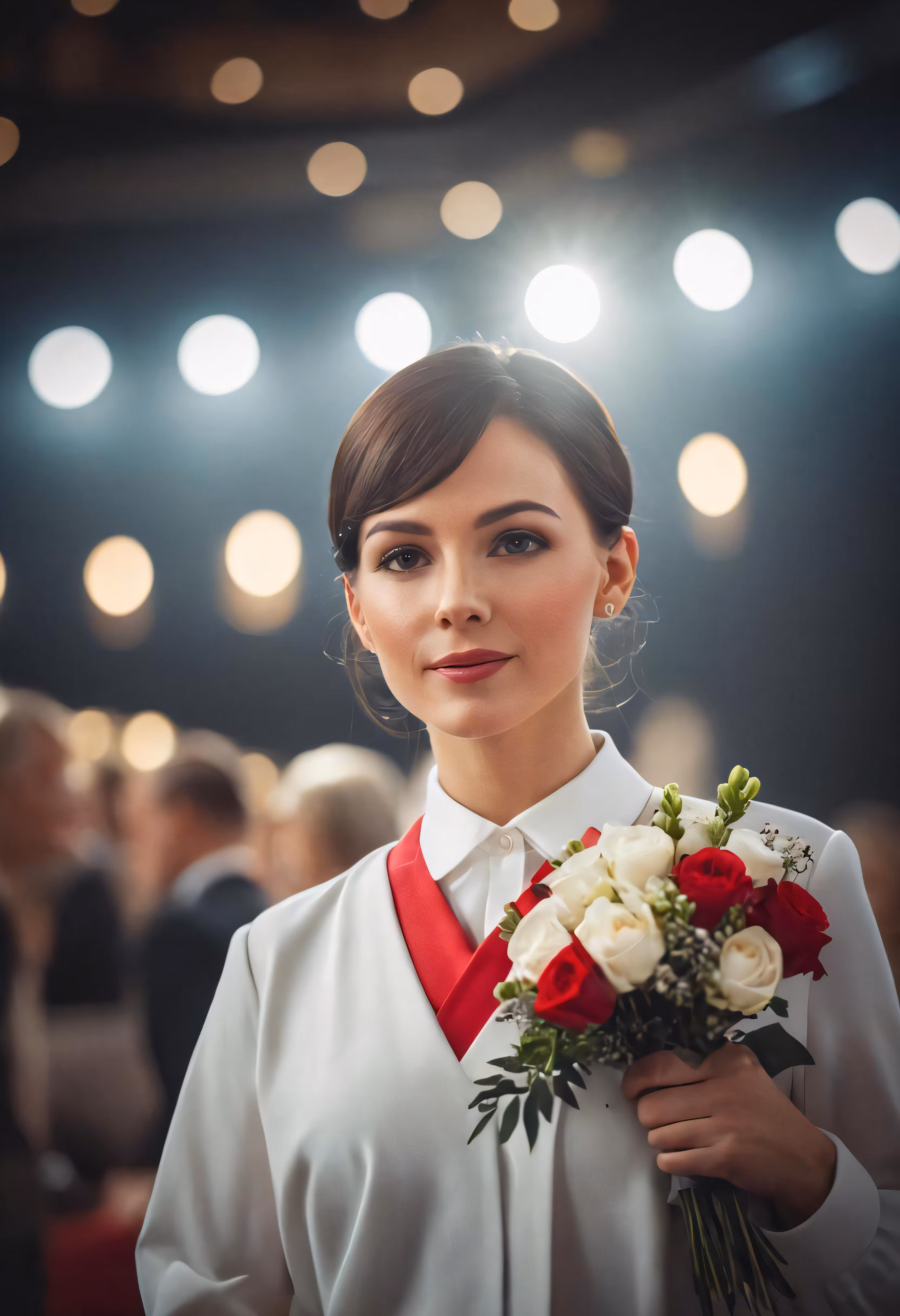 High resolution picture, free to use, a woman holding flowers and posing for a picture