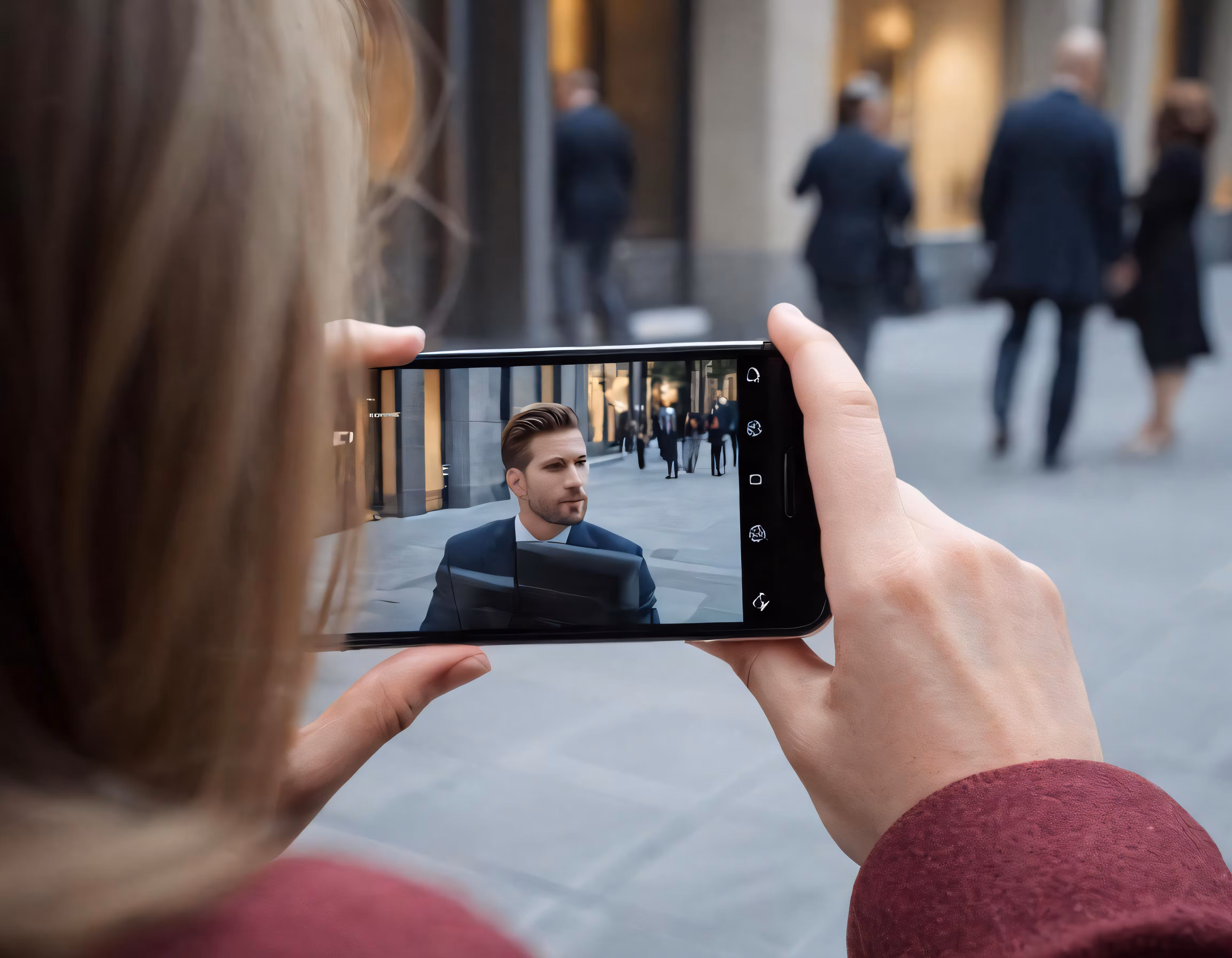 High resolution picture, free to use, a woman holding her cell phone to take a photo