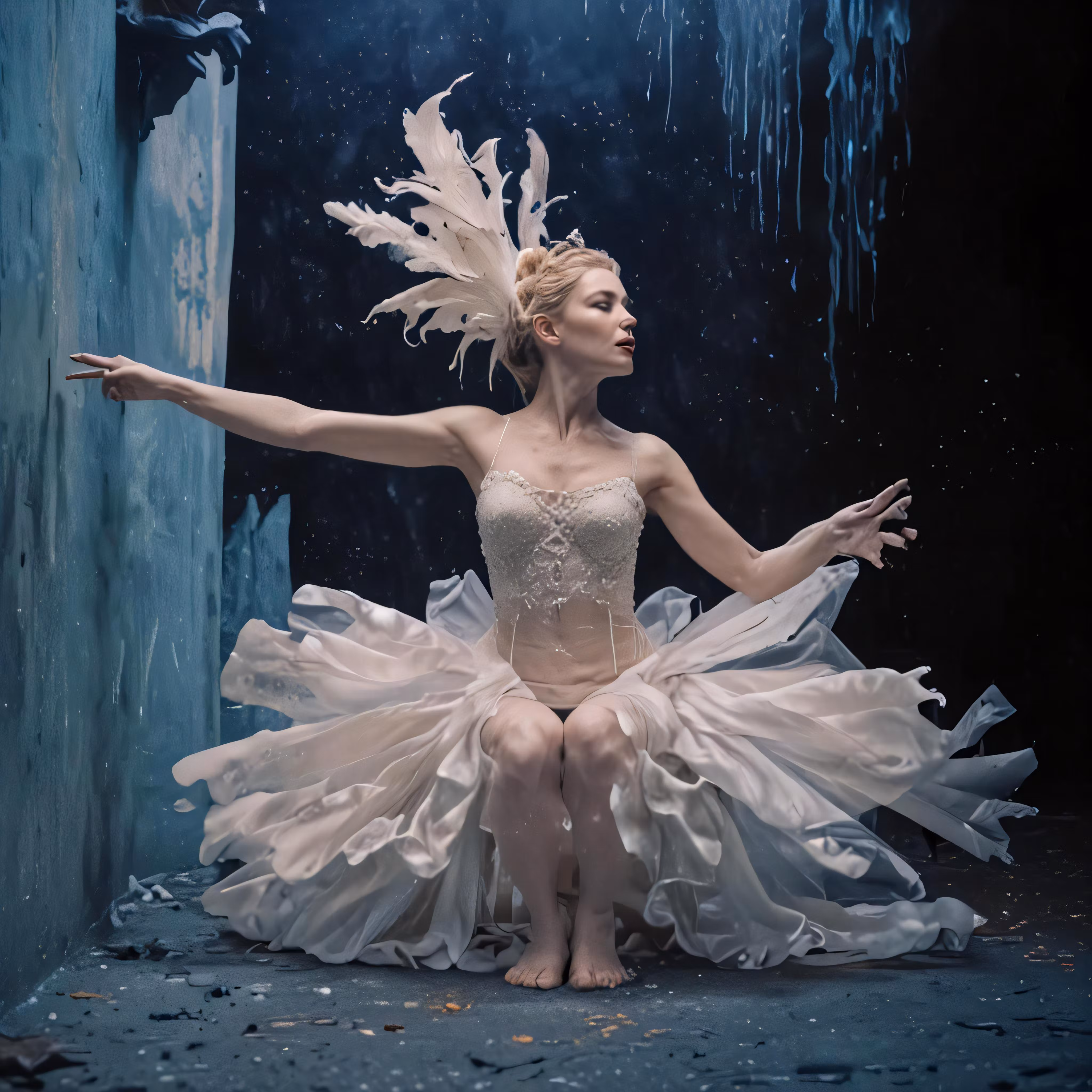 High resolution picture, free to use, a woman in a ballet outfit and white feathers