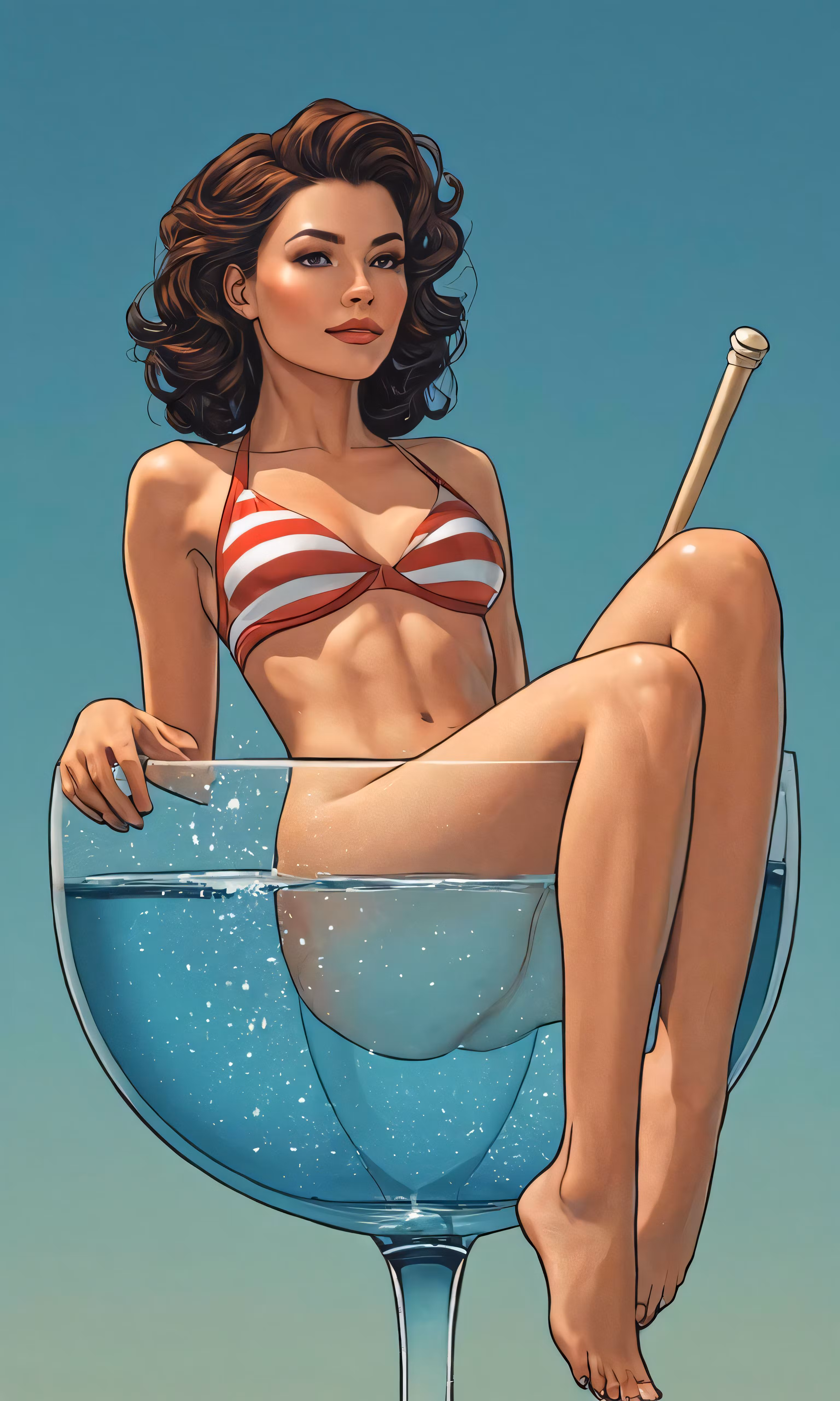High resolution picture, free to use, a woman in a bikini is sitting on a martini