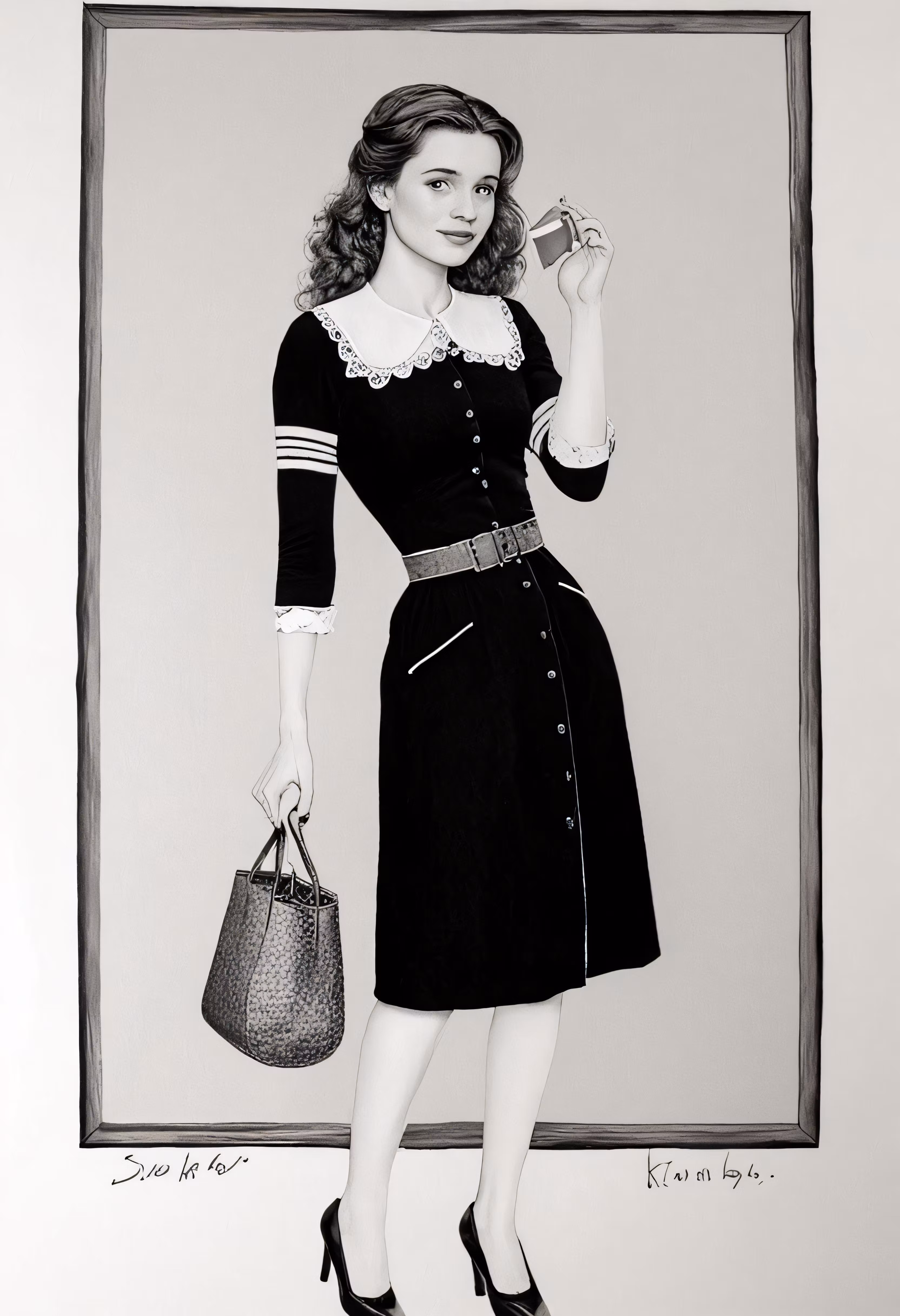 High resolution picture, free to use, a woman in a black dress holding a cell phone