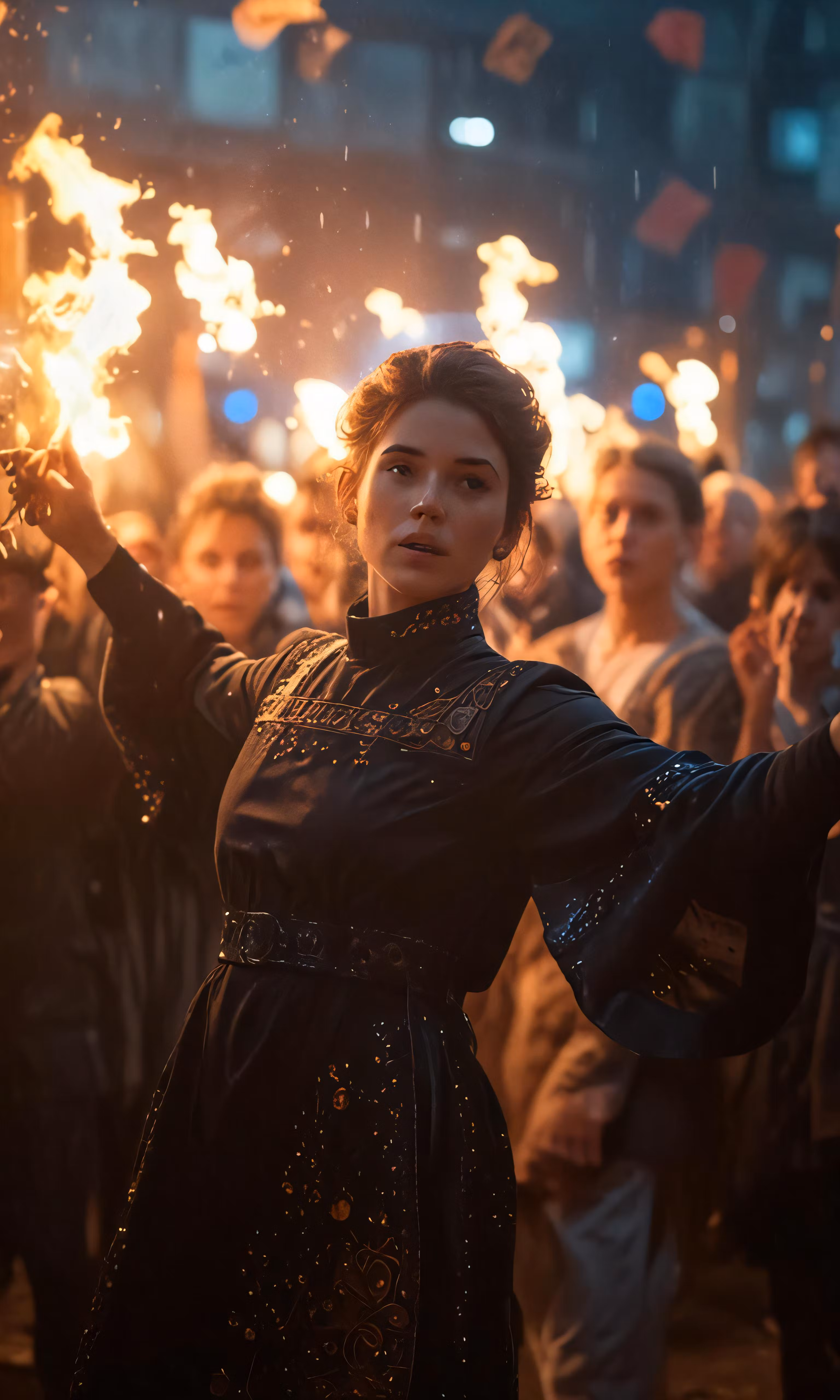 High resolution picture, free to use, a woman in a black dress is holding something in her hand while people watch