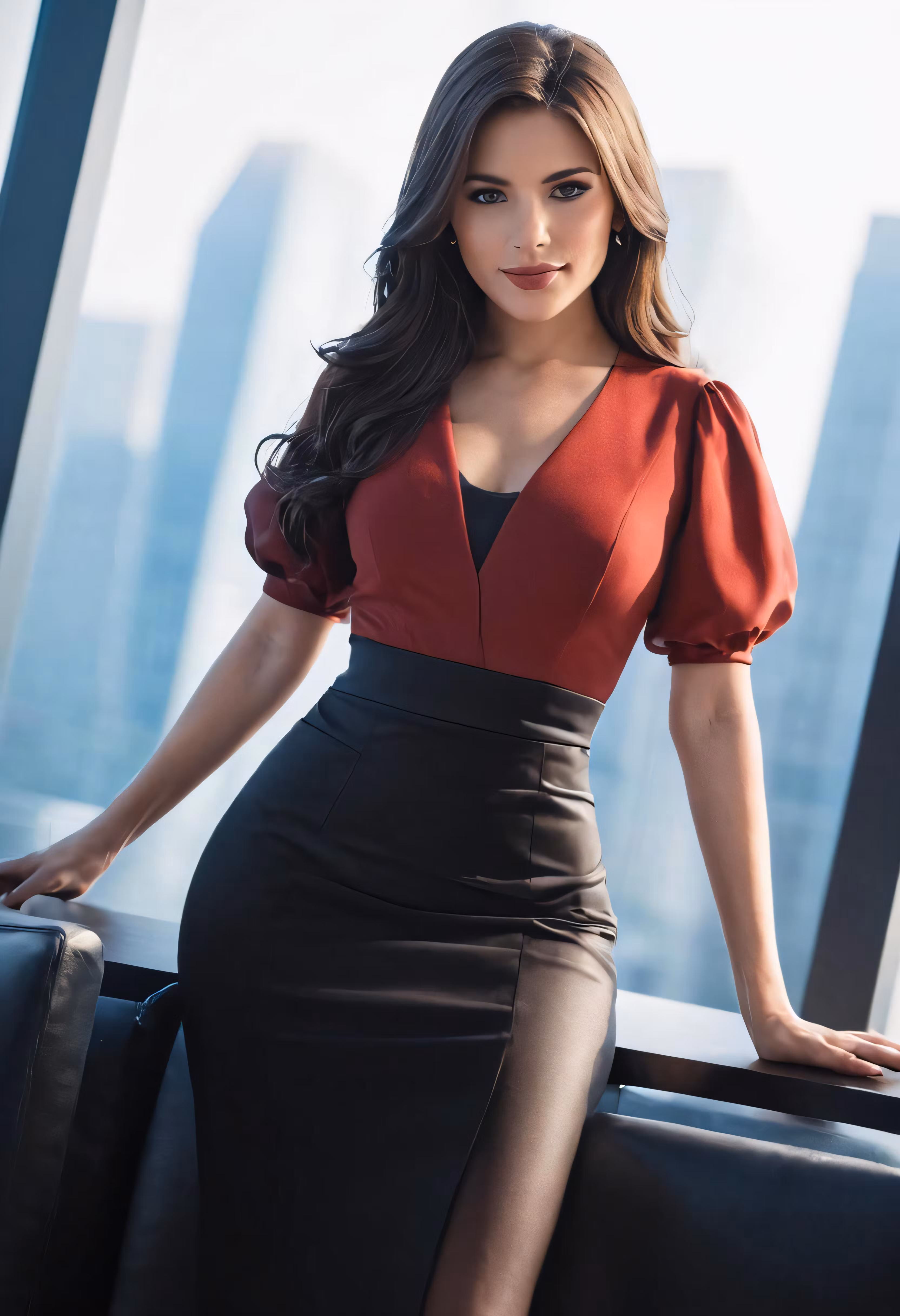 High resolution picture, free to use, a woman in a black skirt and top