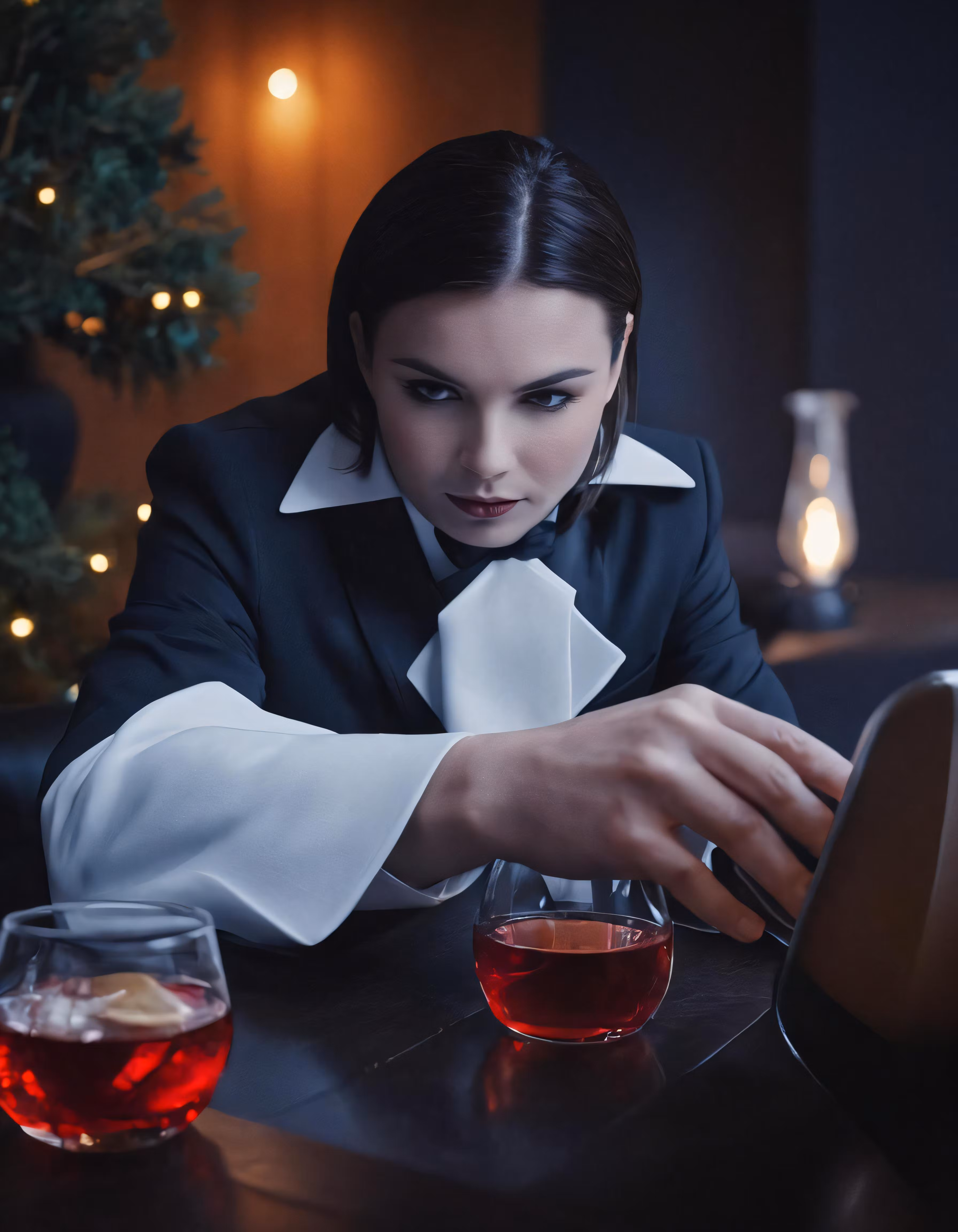 High resolution picture, free to use, a woman in a black suit pouring red wine from a glass