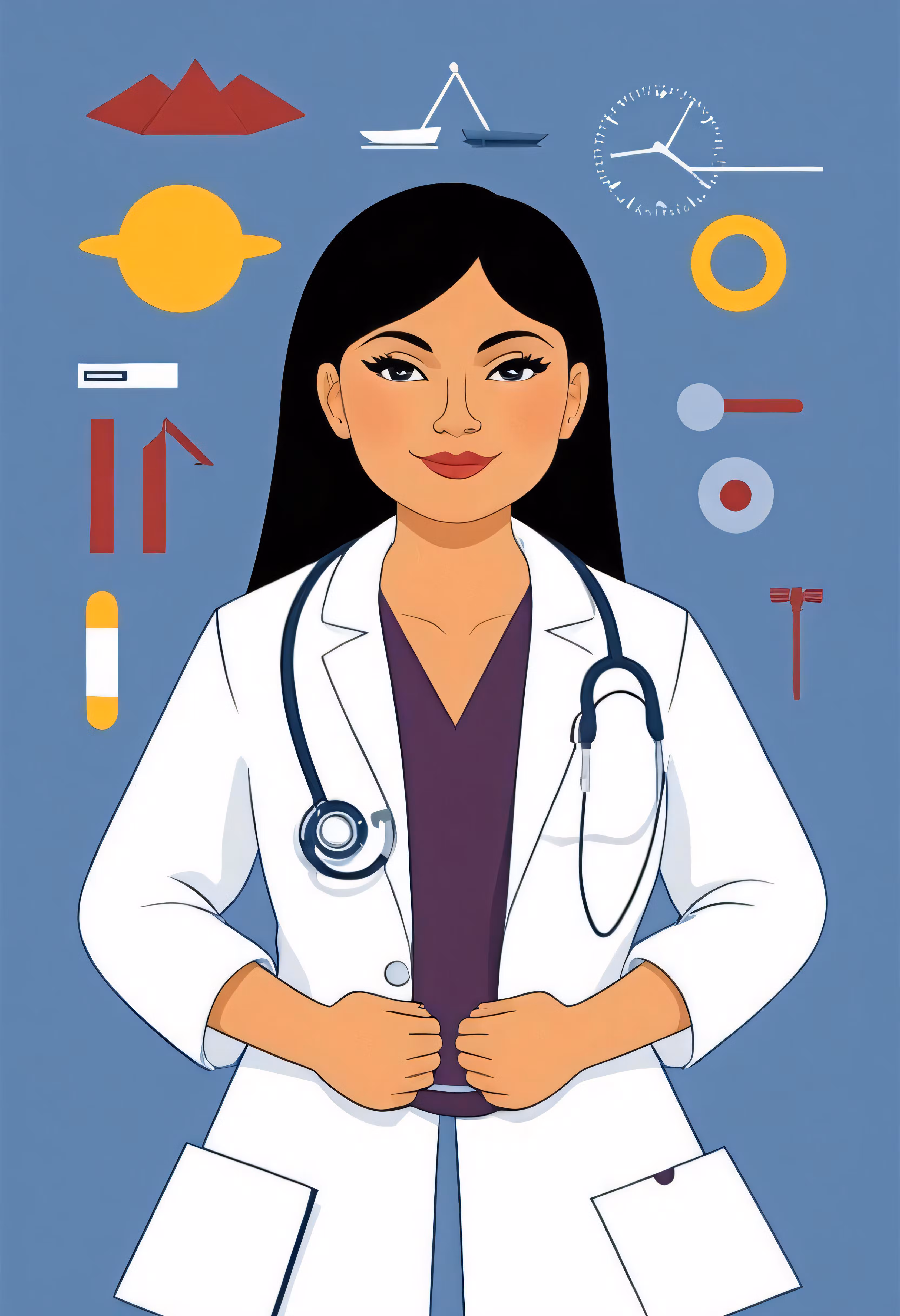 High resolution picture, free to use, a woman in a doctors gown with her hands on her chest