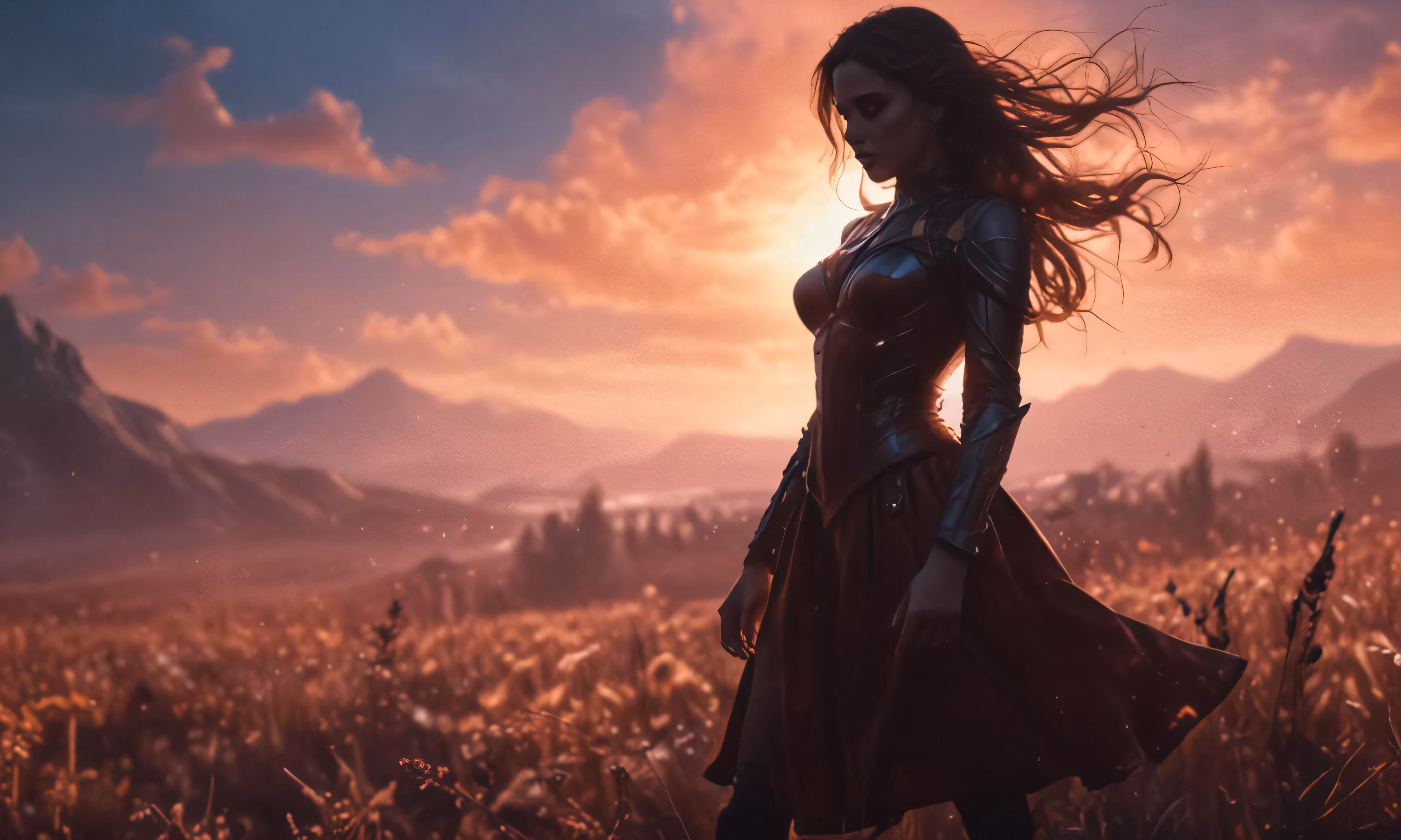High resolution picture, free to use, a woman in a field in a sci   fic movie