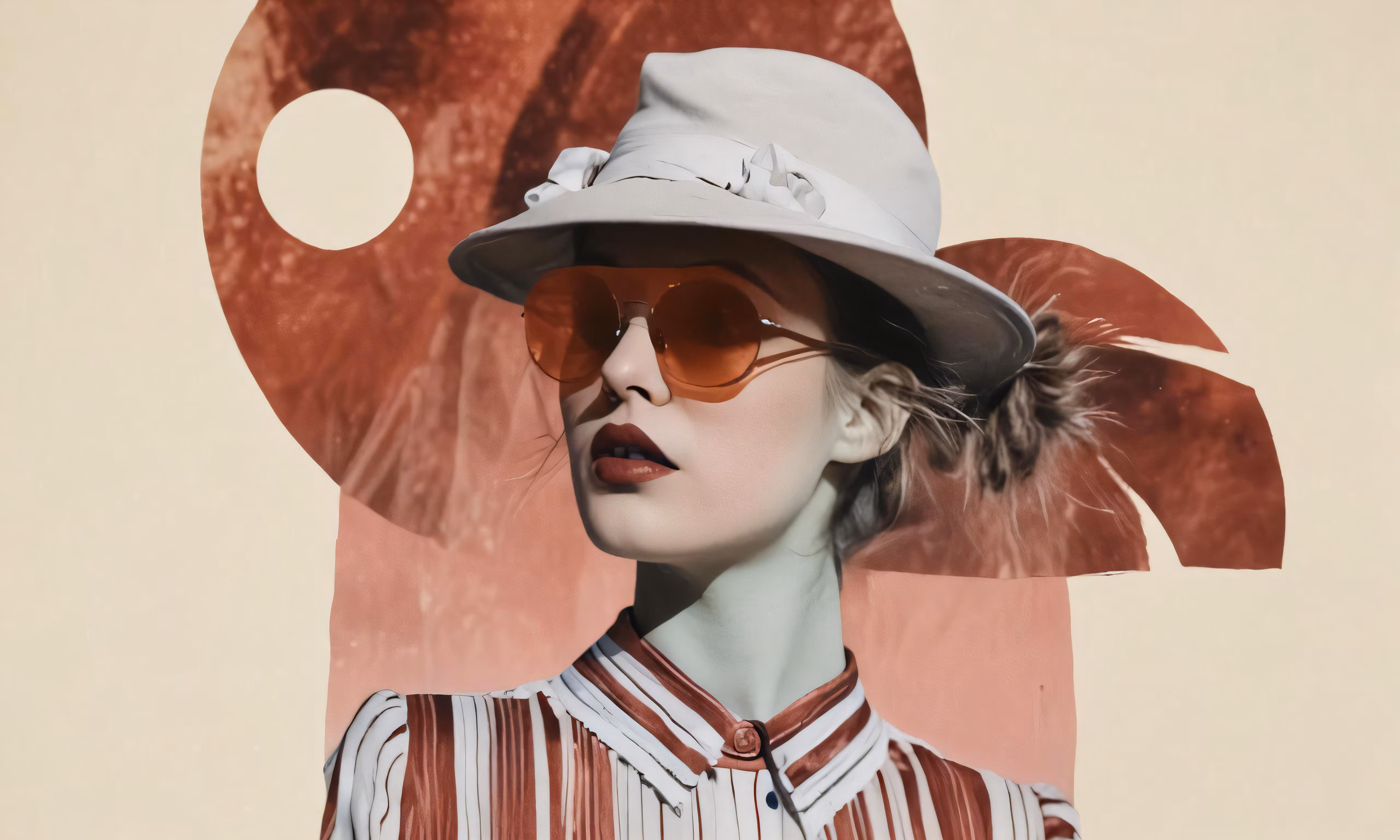 High resolution picture, free to use, a woman in a hat and sunglasses is standing against a wall