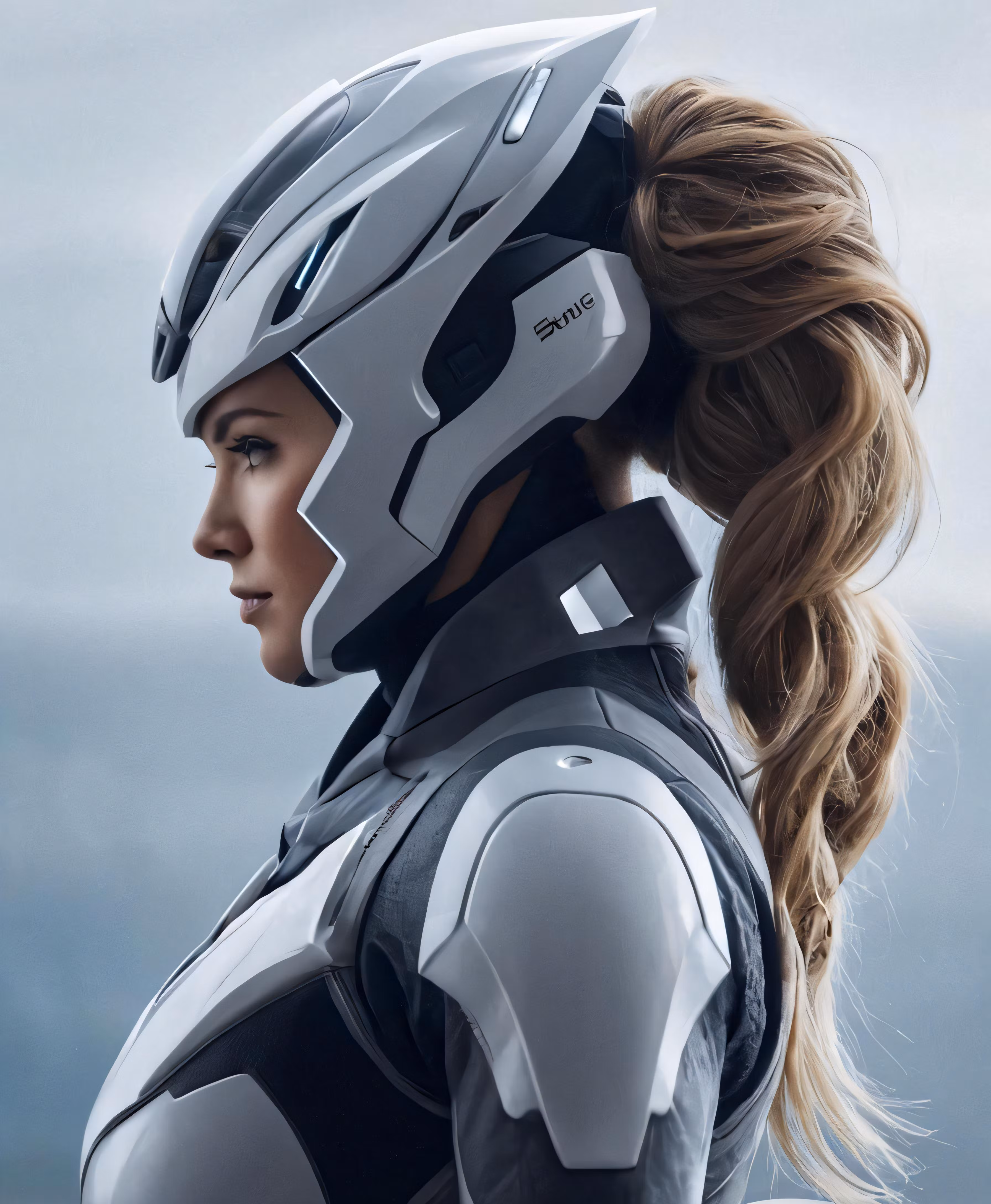High resolution picture, free to use, a woman in a helmet on top of her shoulder