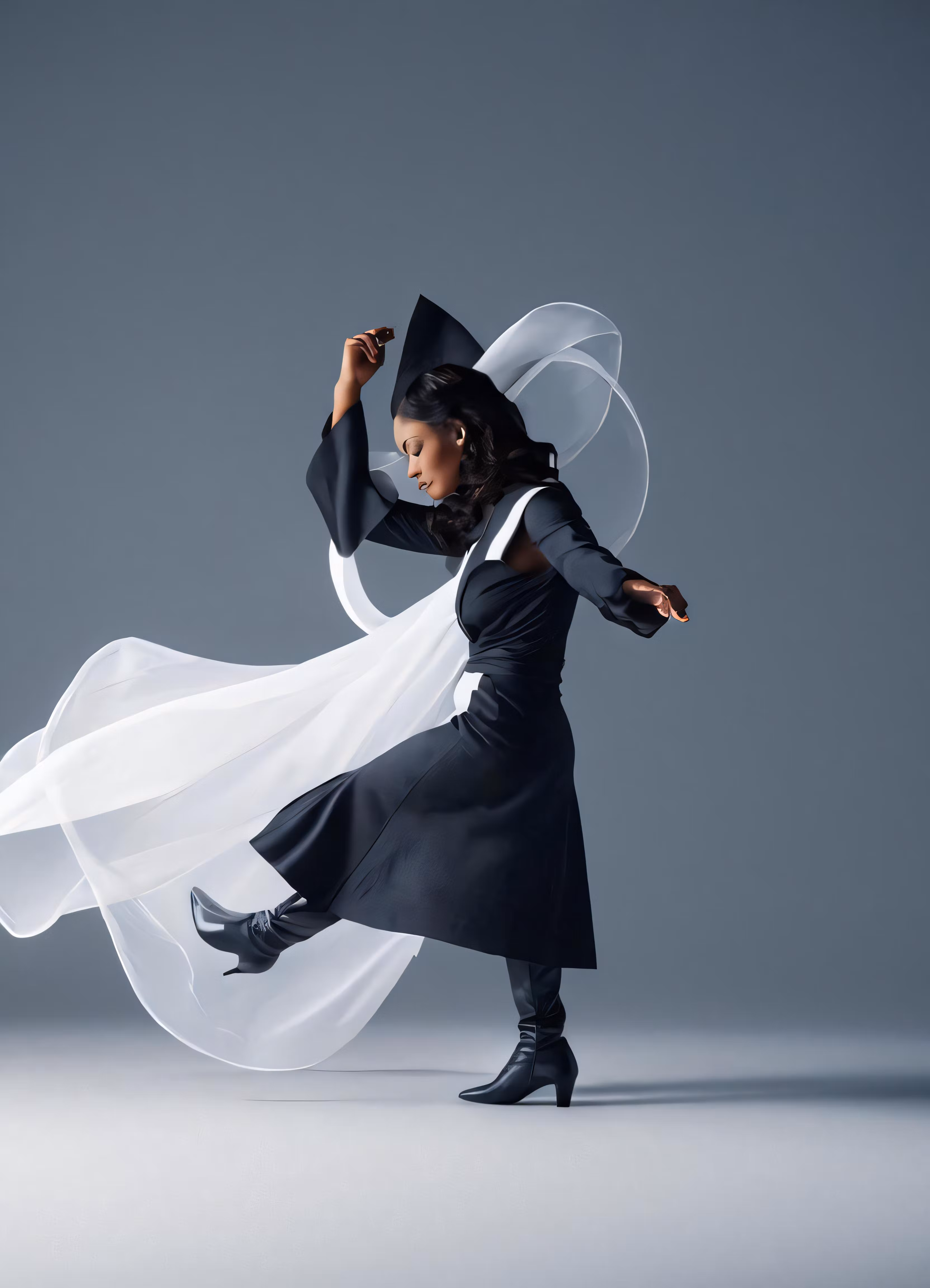 High resolution picture, free to use, a woman in a long dress with a veil and black heels
