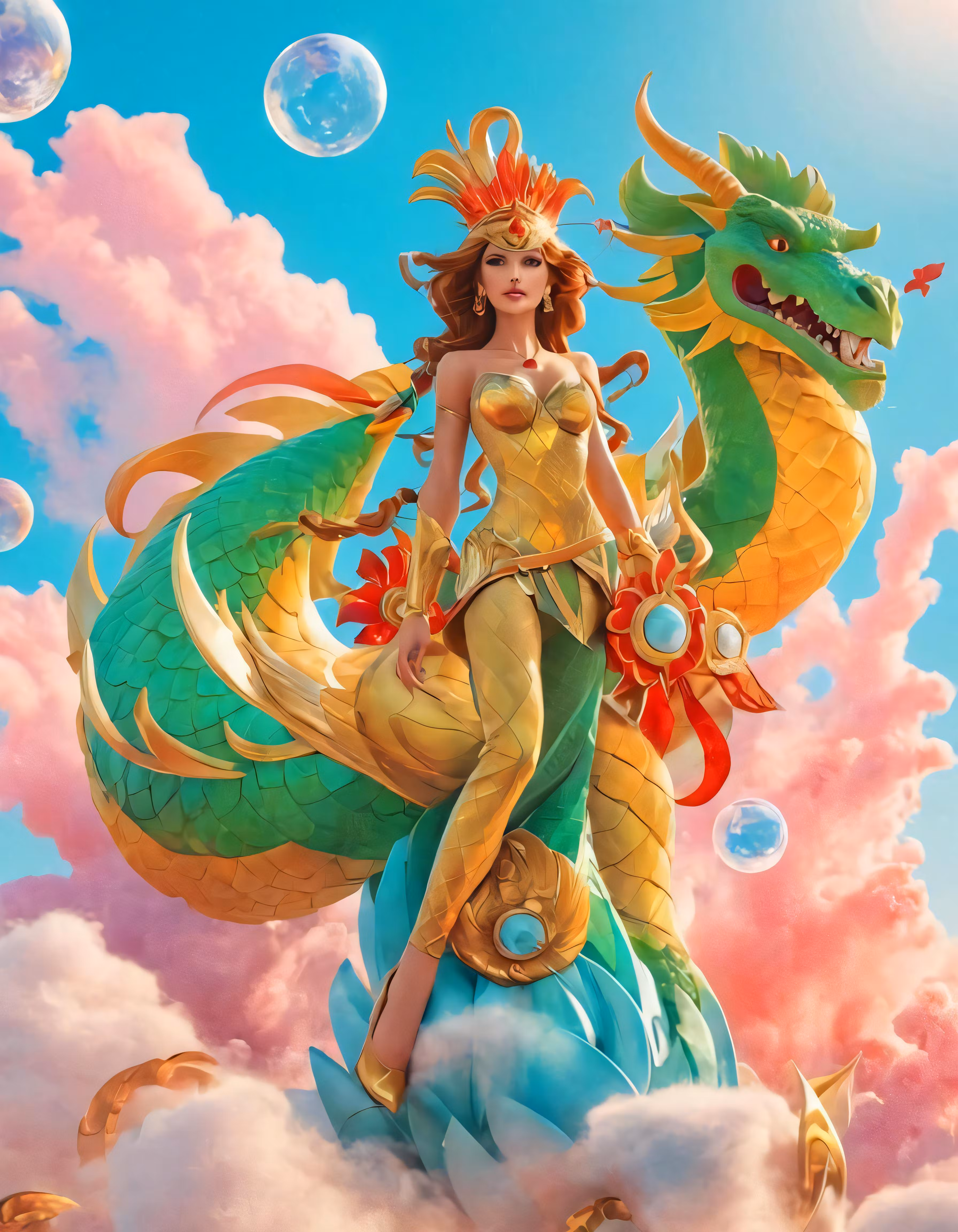 High resolution picture, free to use, a woman in a mermaid costume with a dragon figure