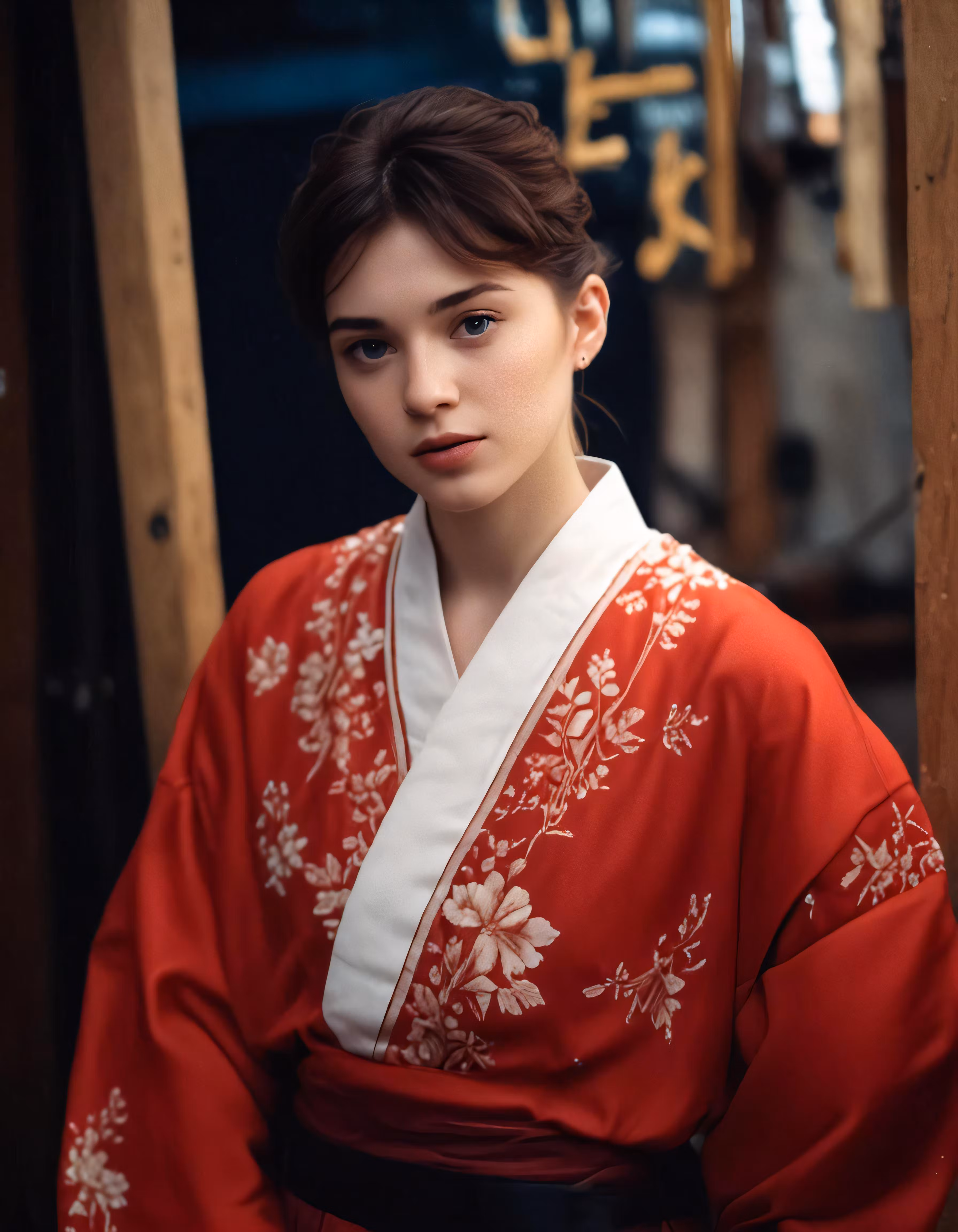 High resolution picture, free to use, a woman in a red outfit holding a white robe