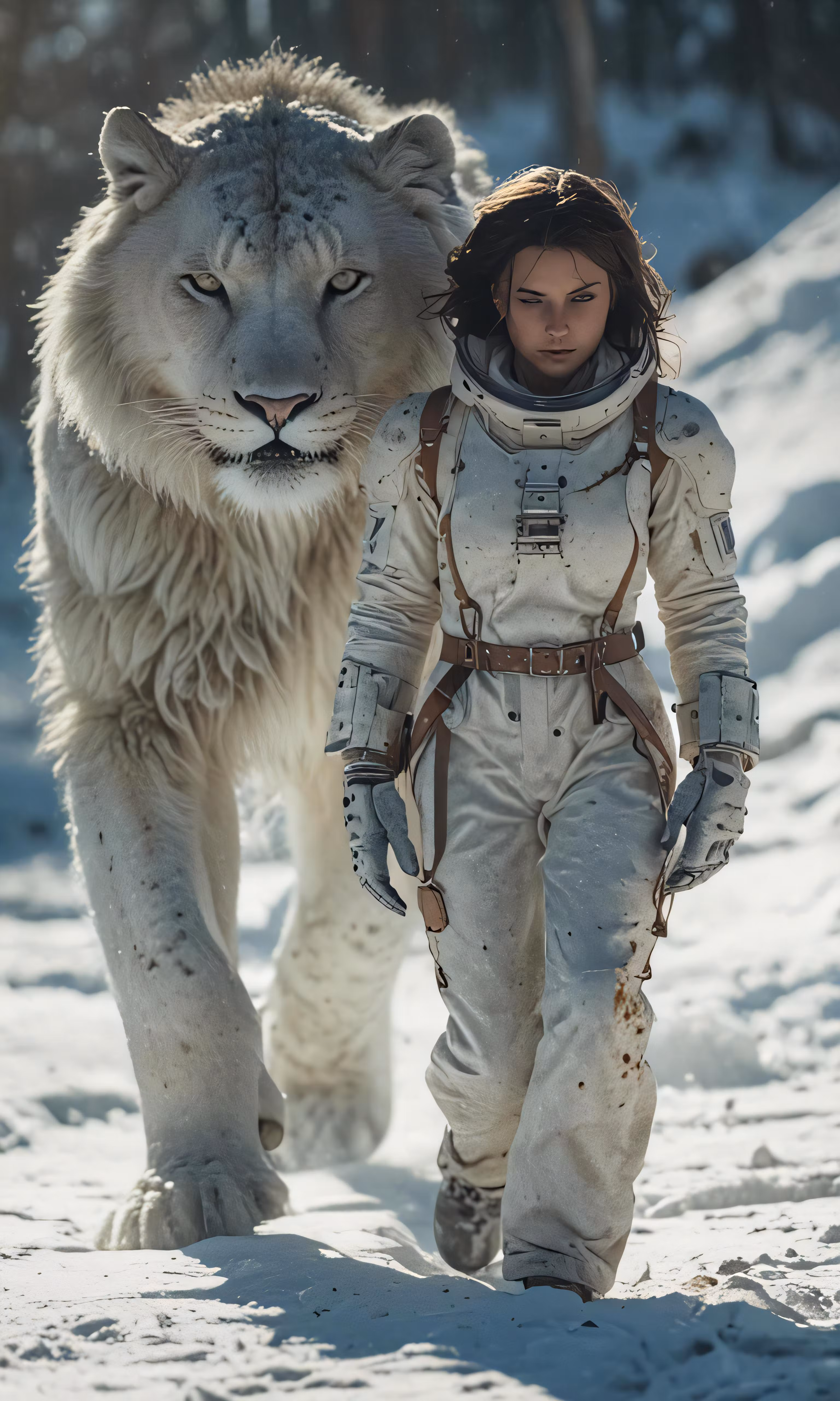 High resolution picture, free to use, a woman in a space suit with an animal behind her