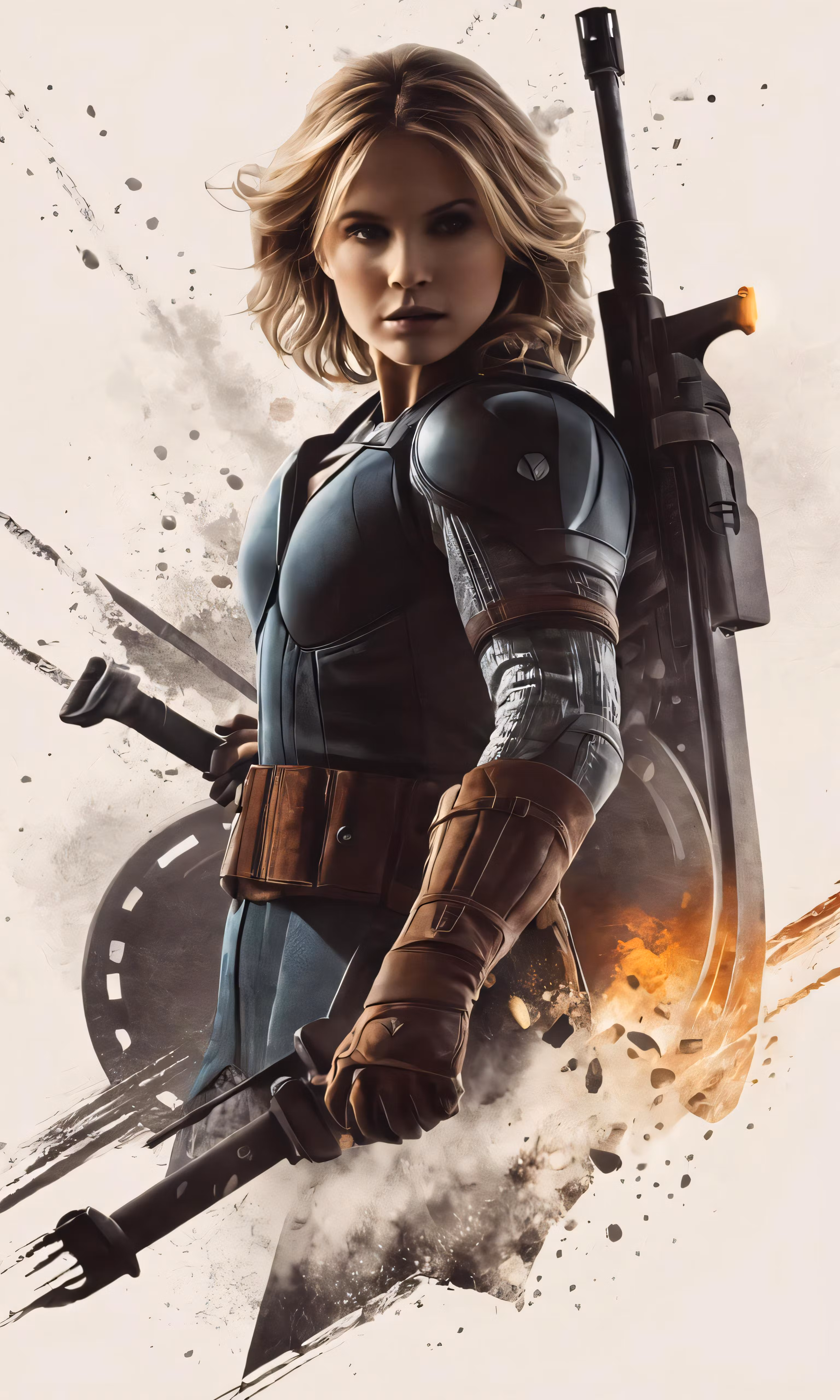 High resolution picture, free to use, a woman in a star wars outfit holds guns