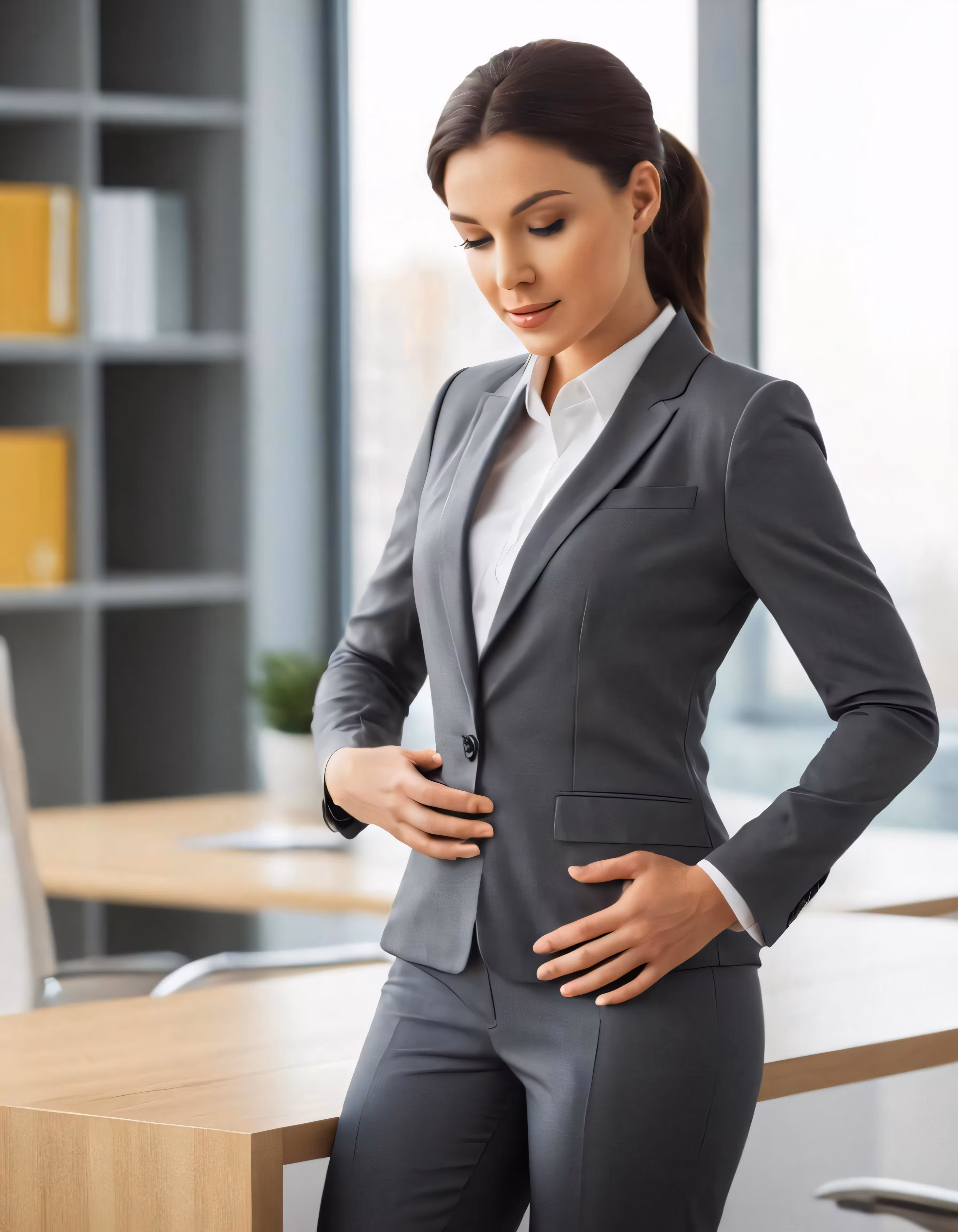 High resolution picture, free to use, a woman in a suit has her back exposed
