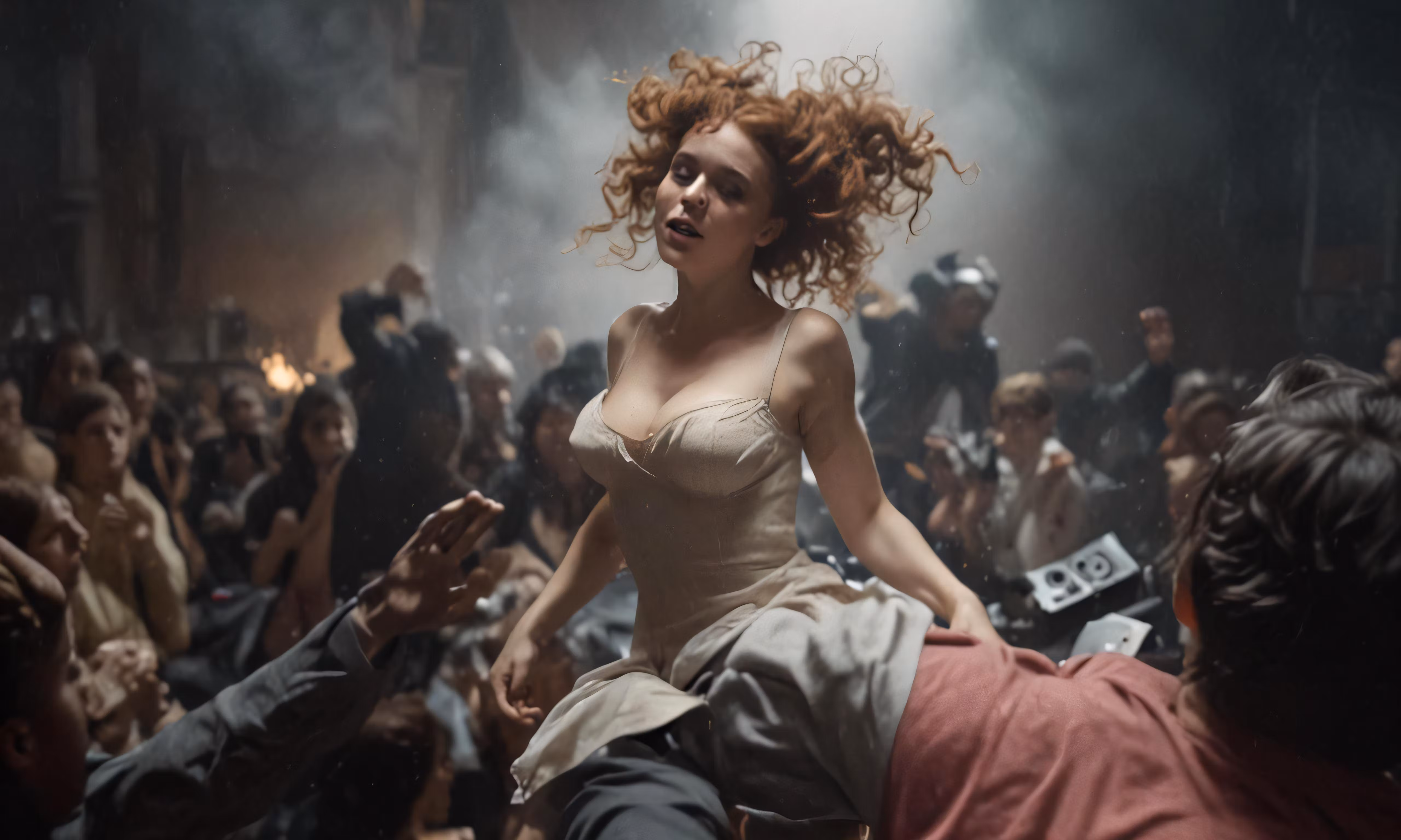 High resolution picture, free to use, a woman in a white bra top walking through a crowd of people