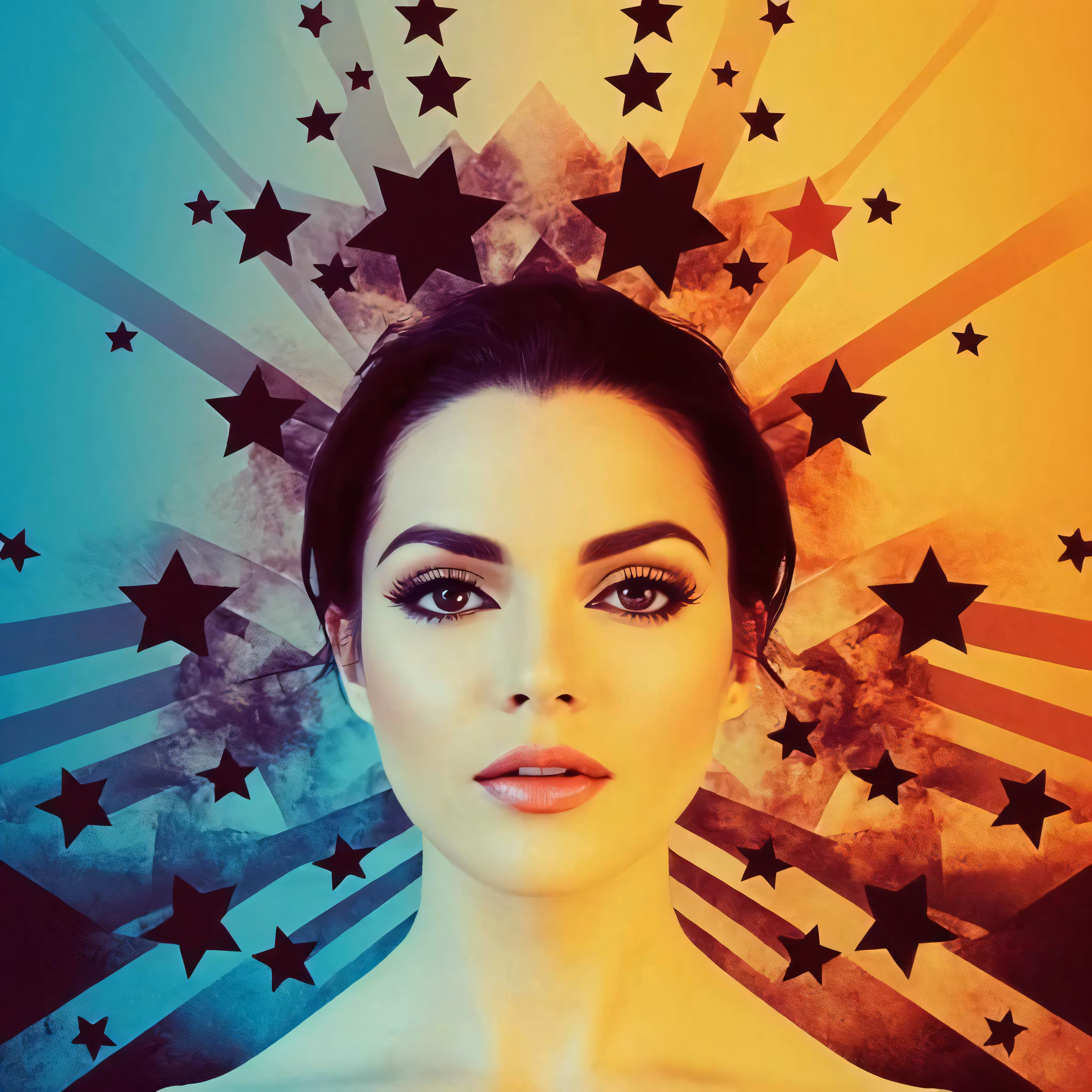 High resolution picture, free to use, a woman in an artistic photo of stars in the sky