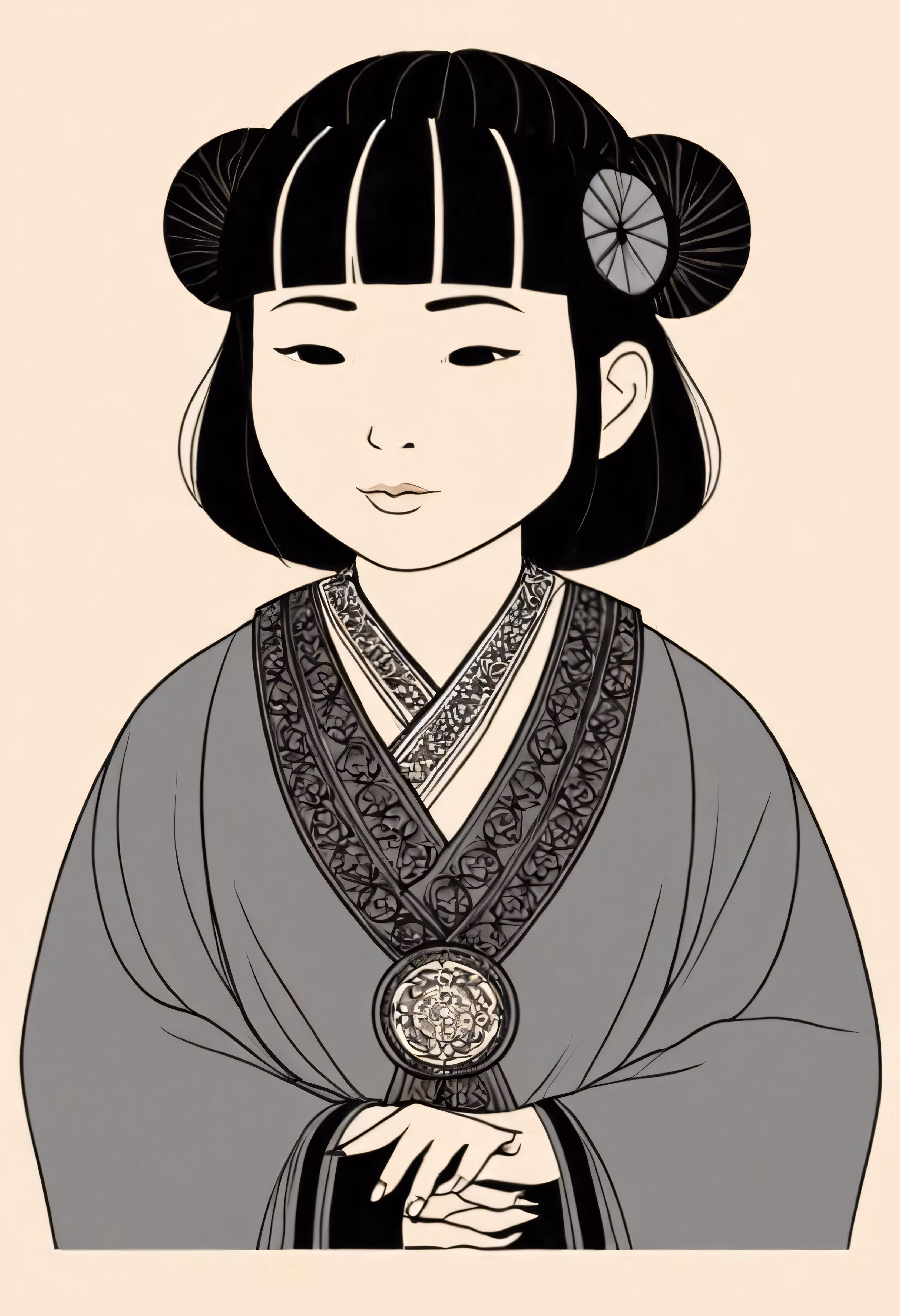High resolution picture, free to use, a woman in an asian kimono and holding a plate