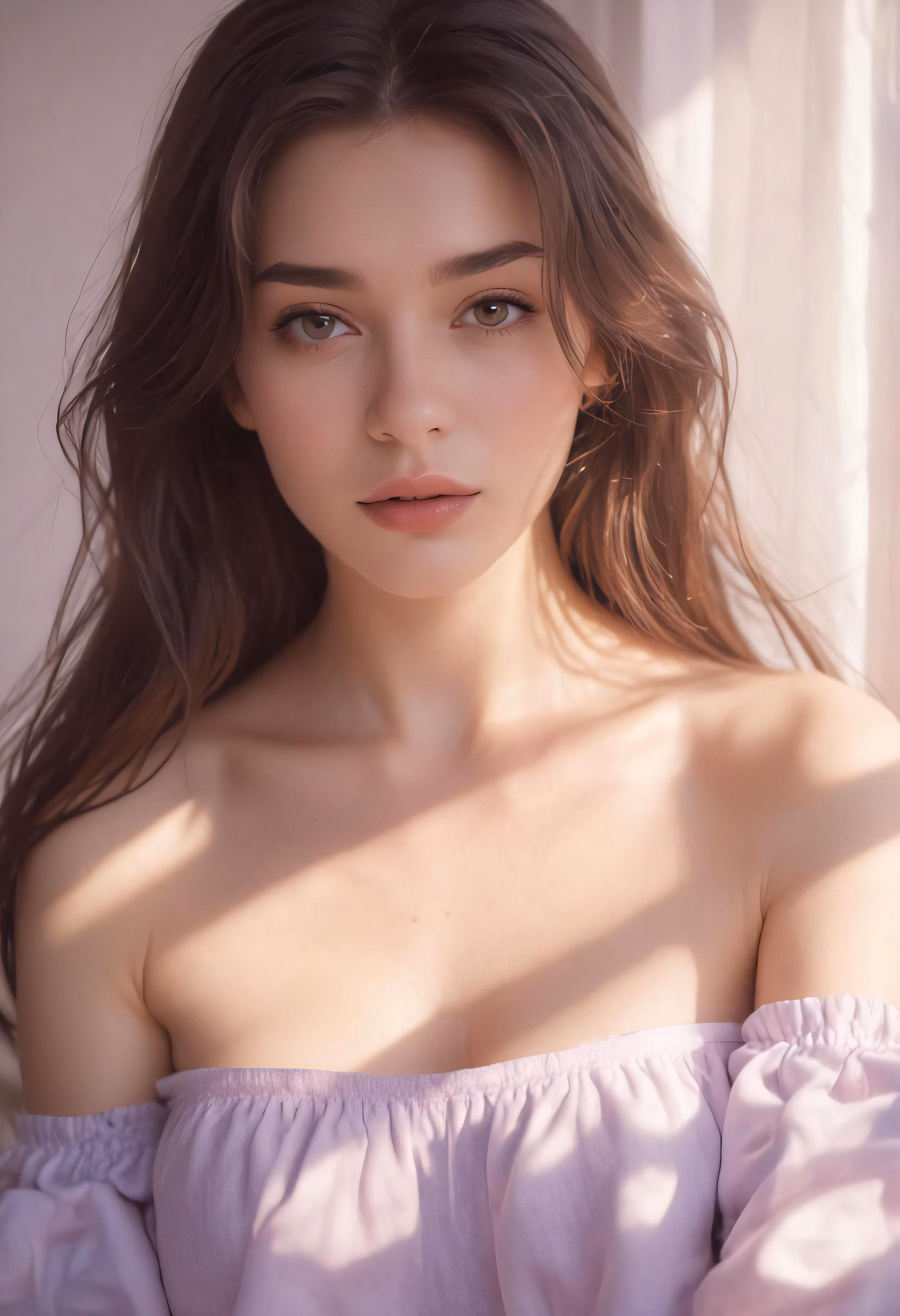 High resolution picture, free to use, a woman in an off the shoulder top is posing