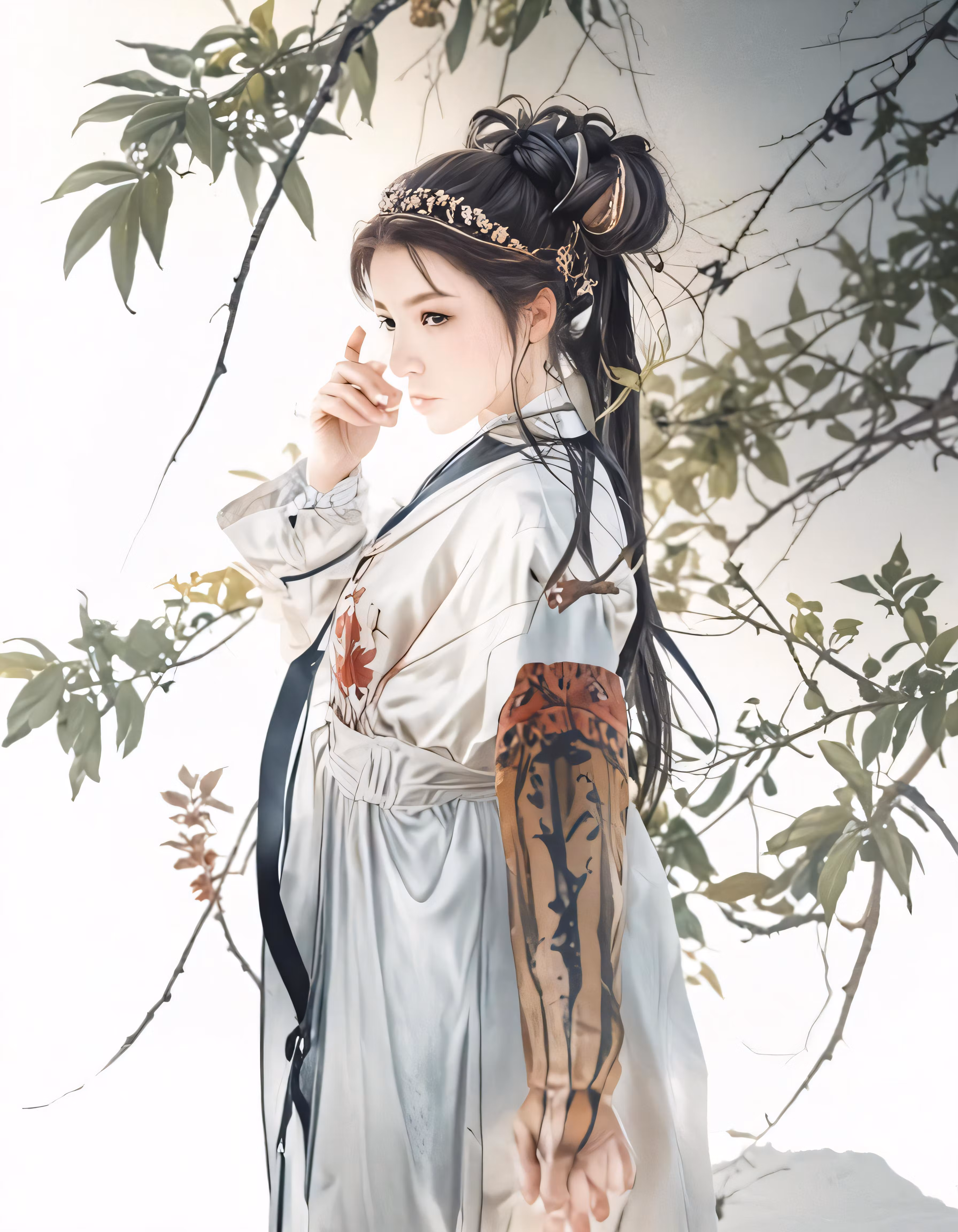 High resolution picture, free to use, a woman in an oriental style costume standing on a white background