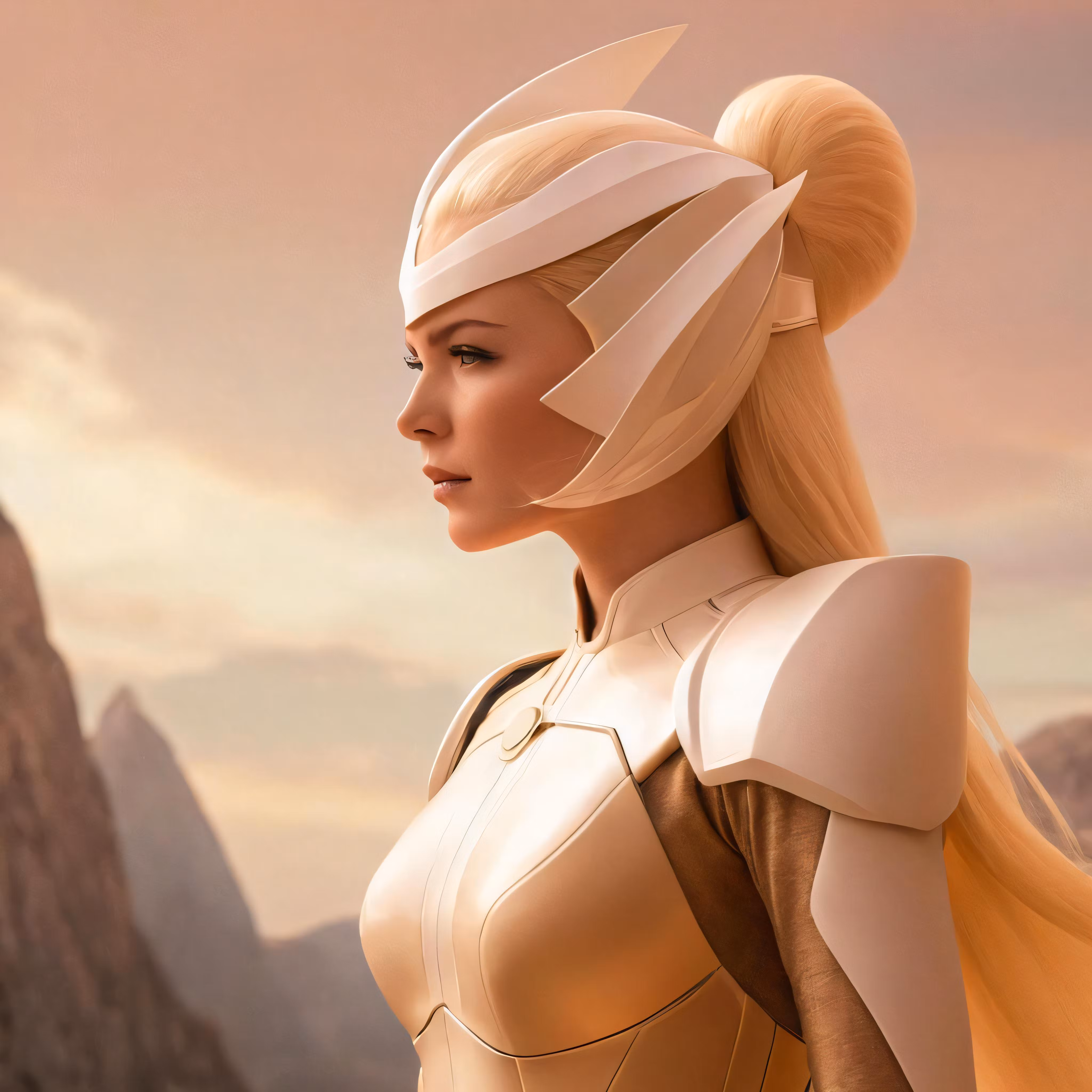 High resolution picture, free to use, a woman in armor and a big ponytail on the side