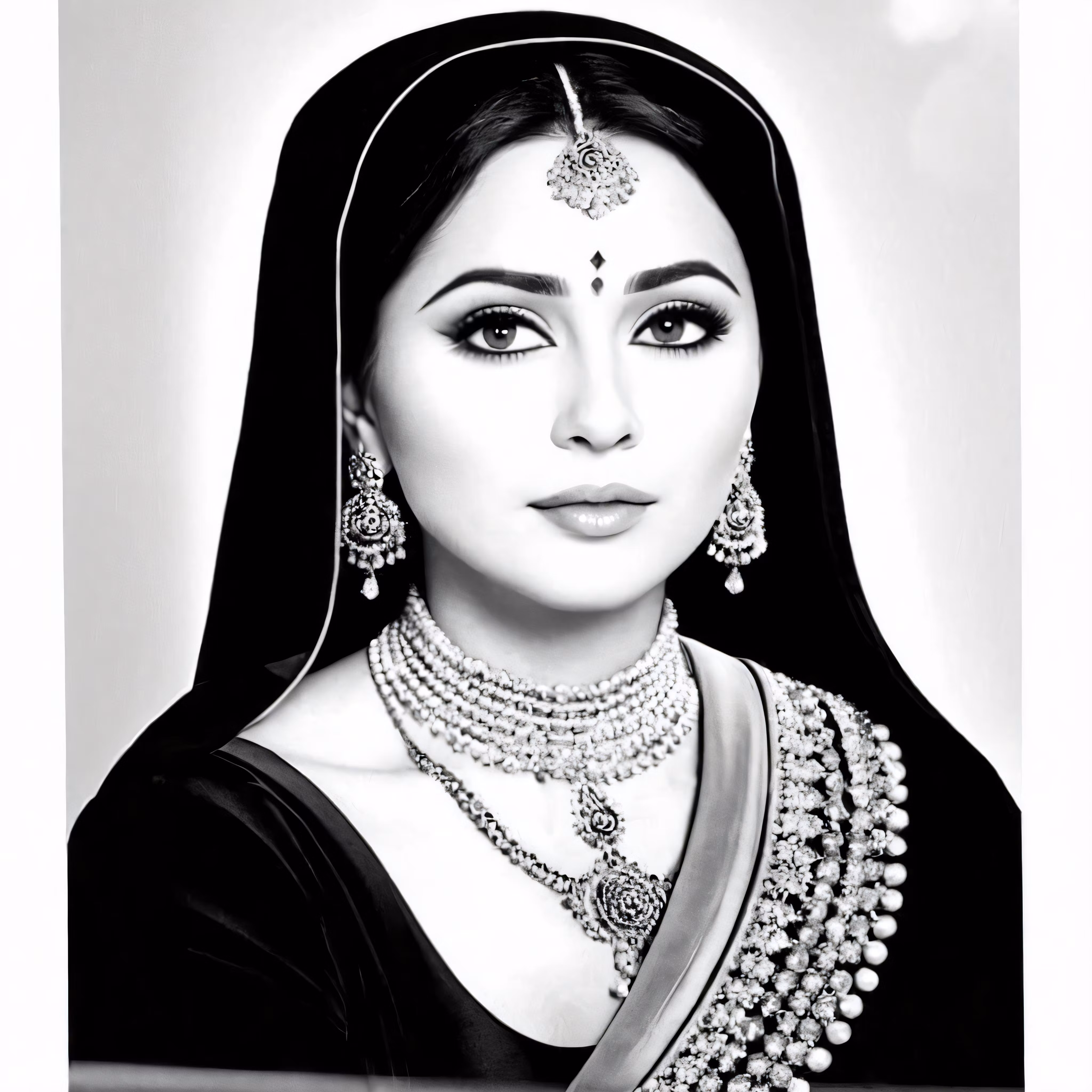 High resolution picture, free to use, a woman in black and white dressed in jewellery