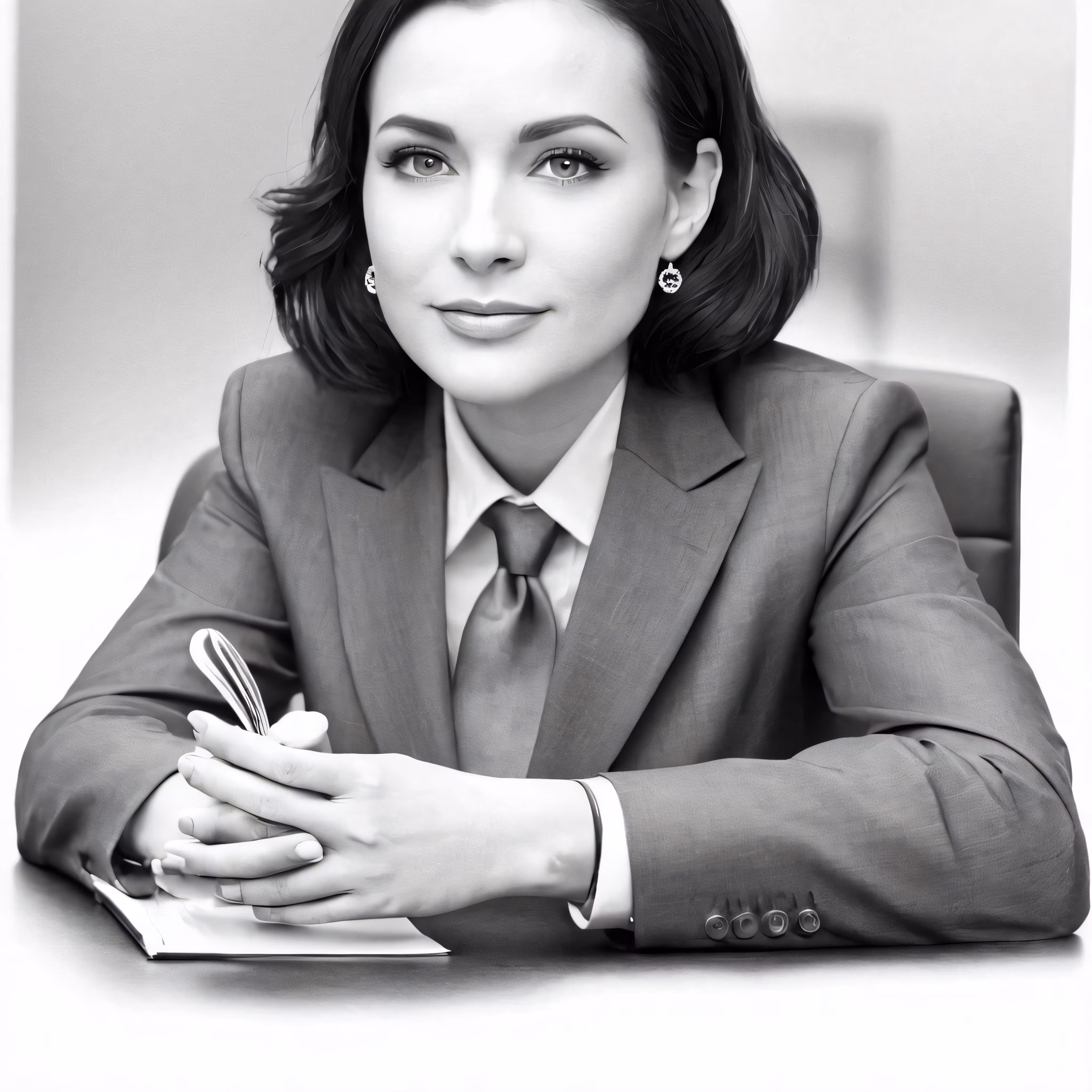 High resolution picture, free to use, a woman in business attire sitting at her desk