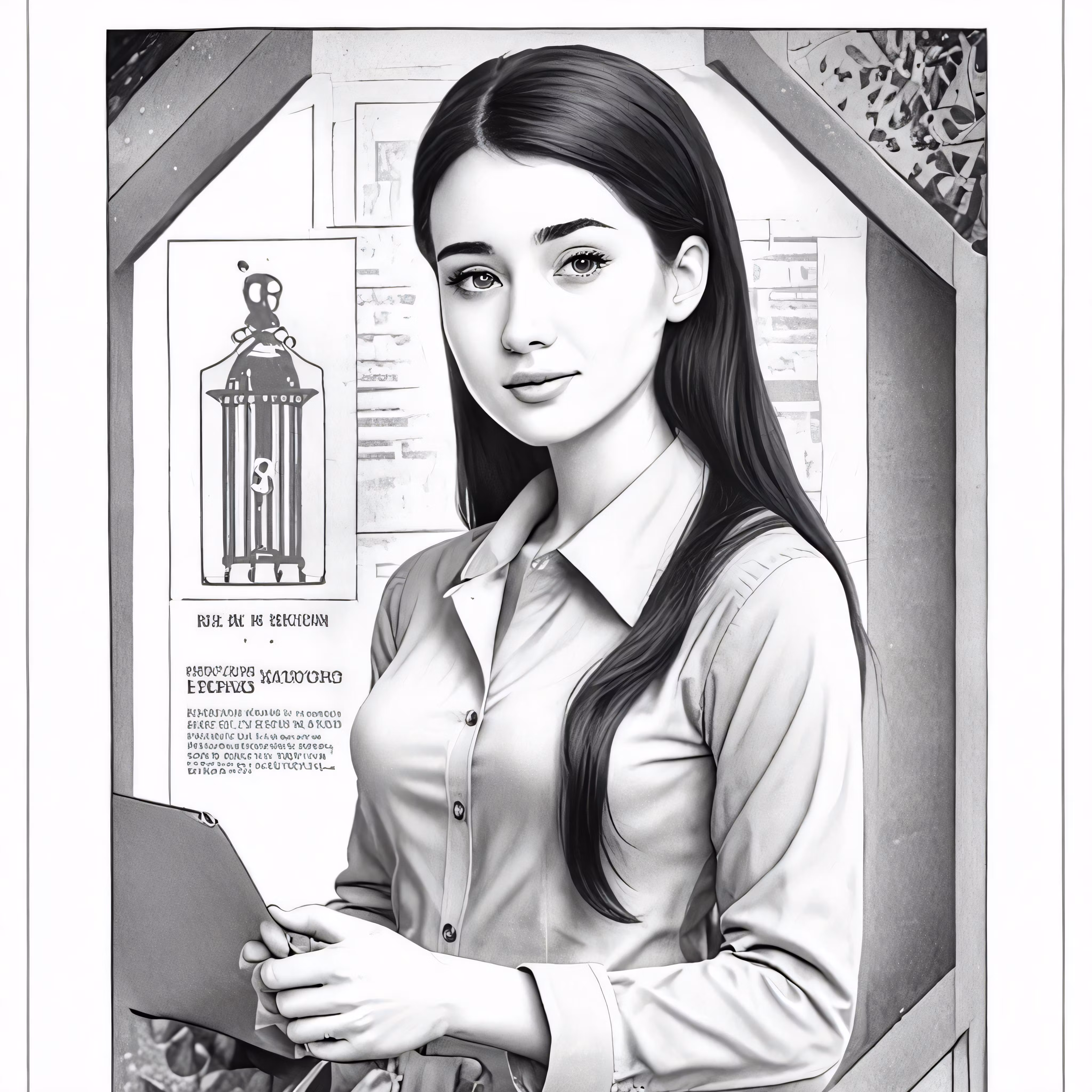 High resolution picture, free to use, a woman in dress clothes and glasses is shown with an illustration