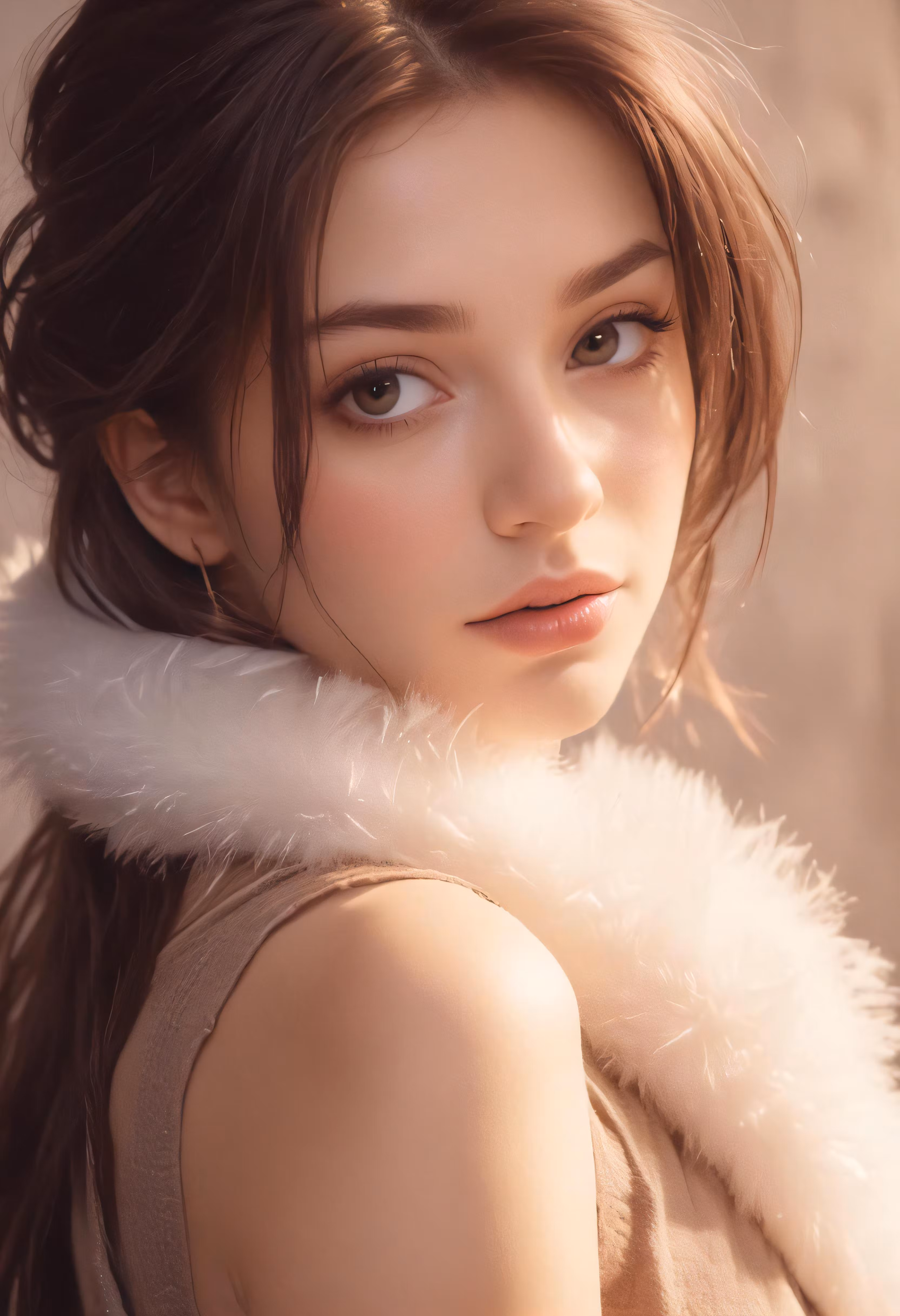 High resolution picture, free to use, a woman in fur collar posing for a picture