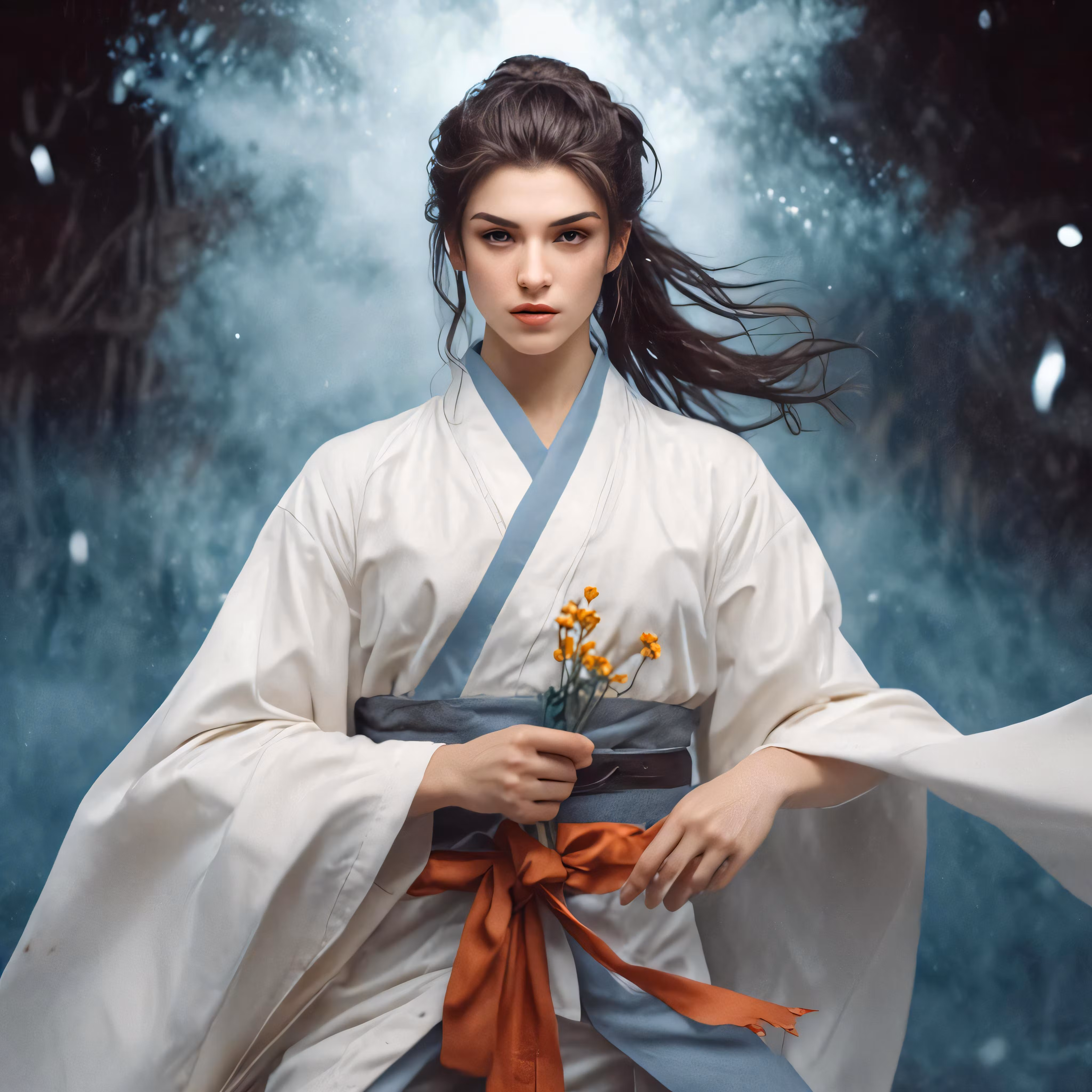High resolution picture, free to use, a woman in oriental garb holding a vase