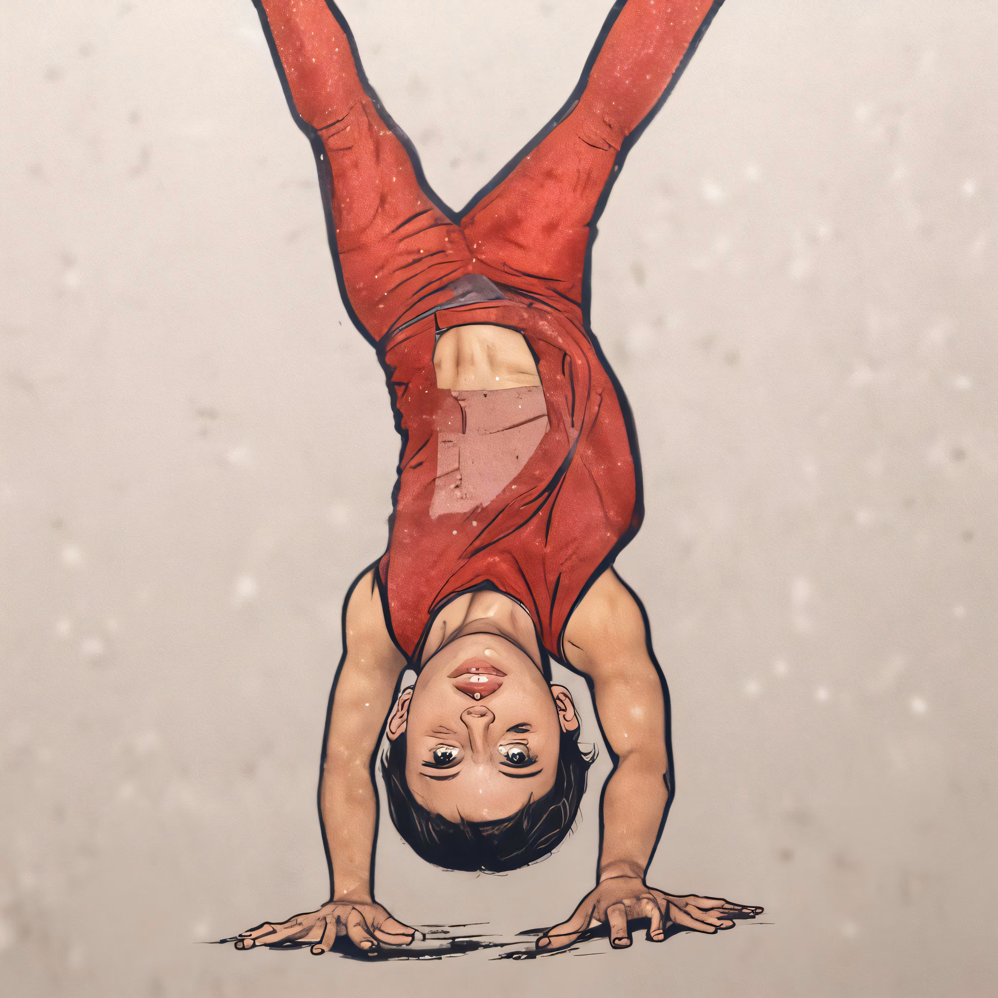 High resolution picture, free to use, a woman in red shirt doing a handstand