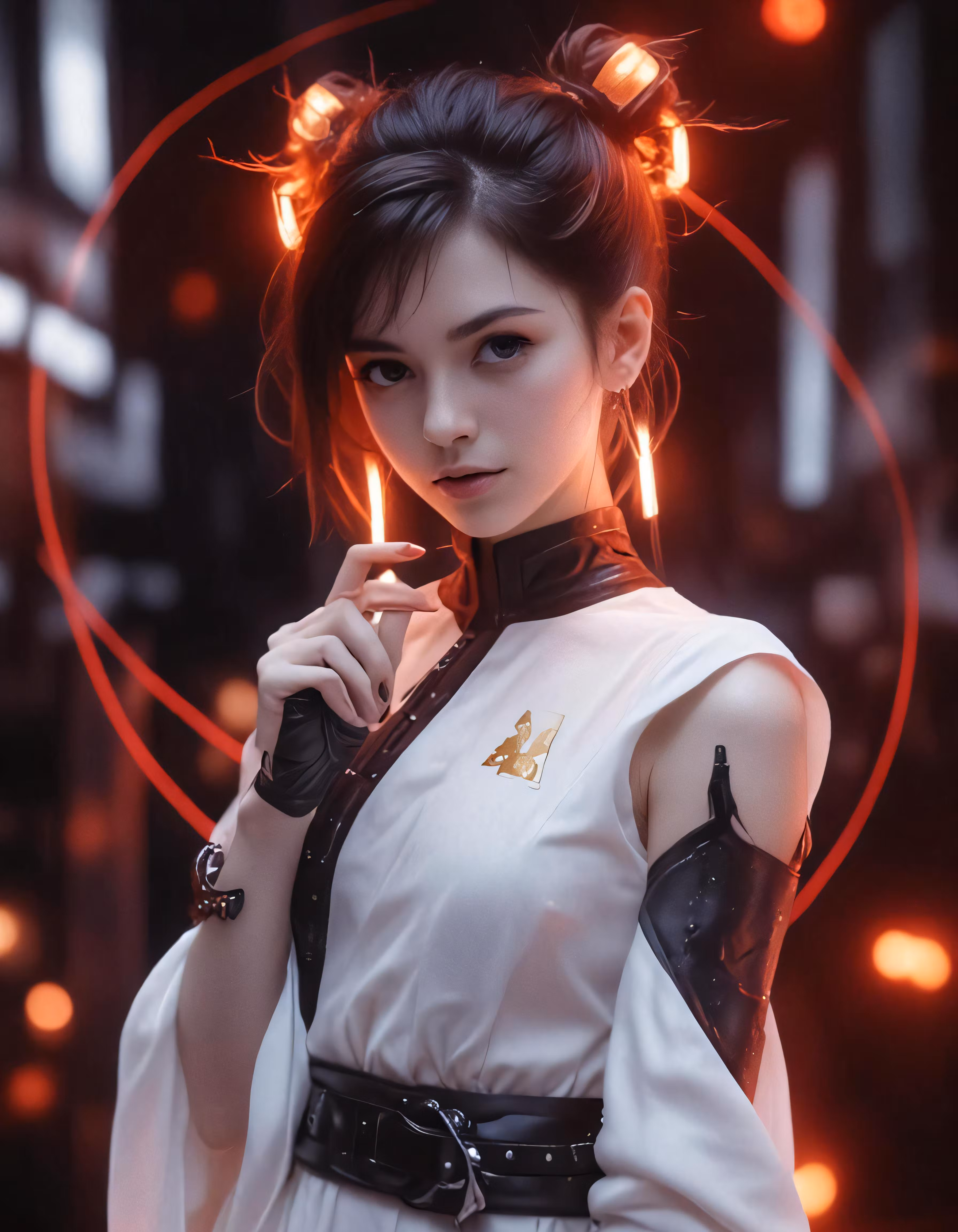 High resolution picture, free to use, a woman in star wars clothing holds up a glowing candle