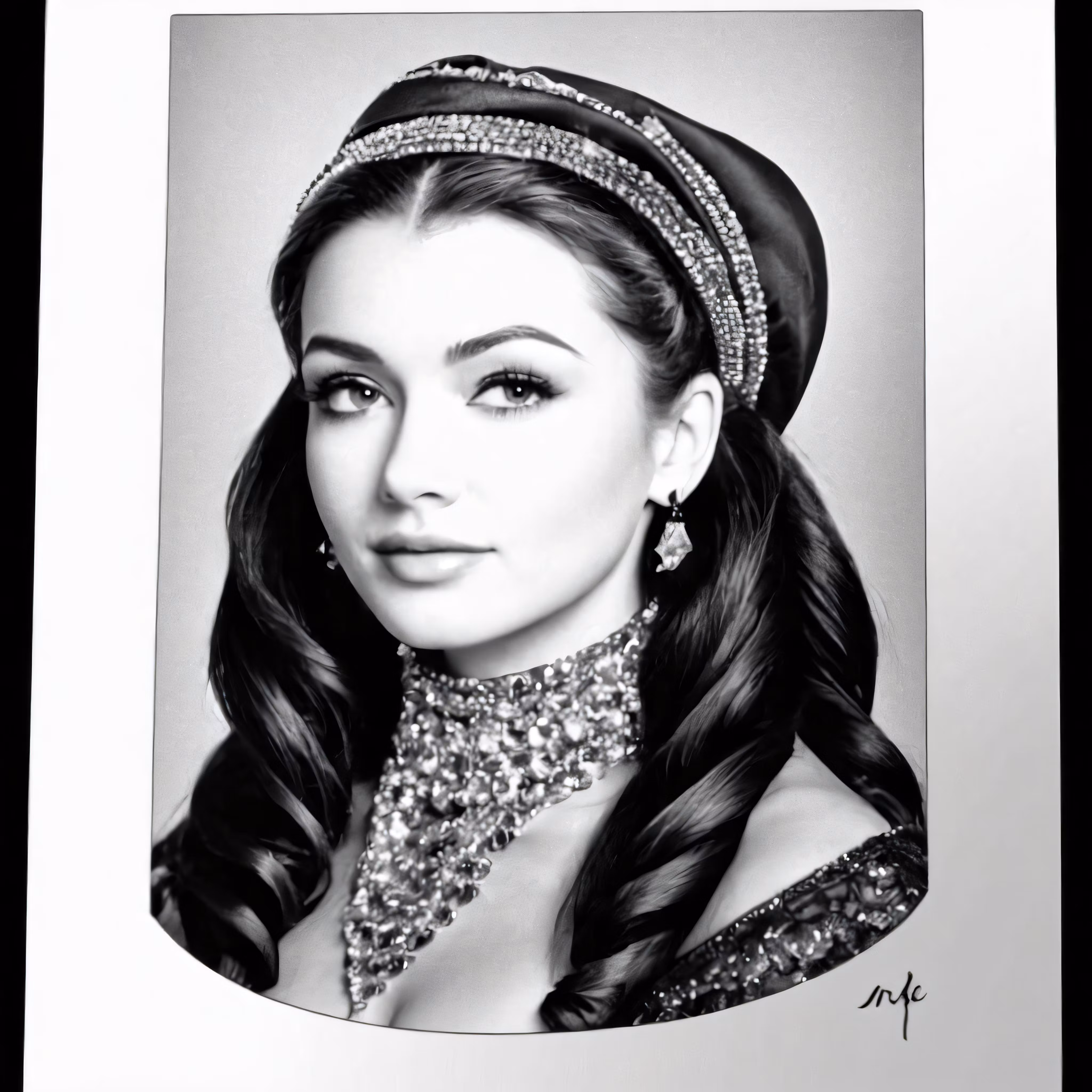 High resolution picture, free to use, a woman in tiara and head piece, with a black hat on her head