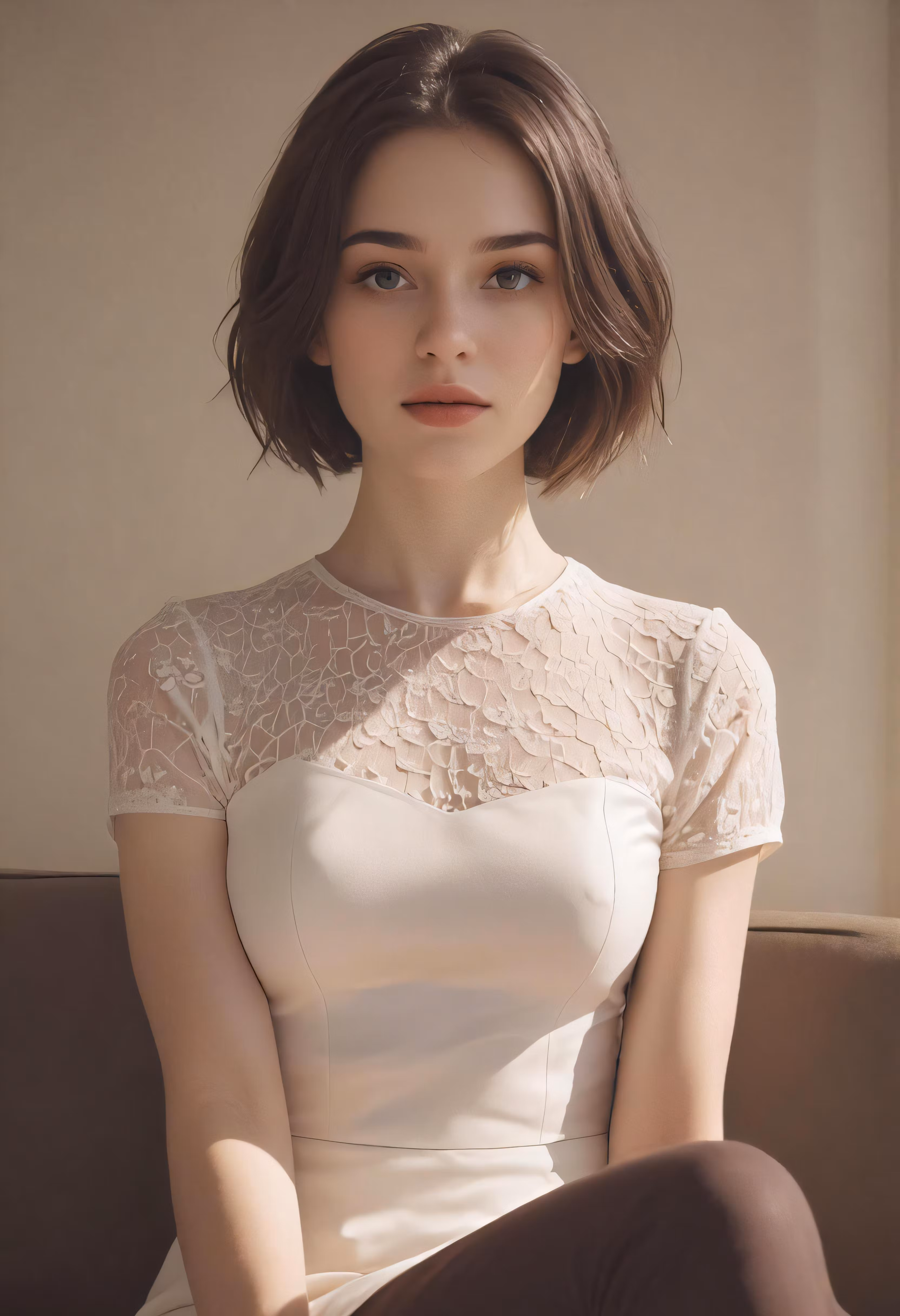 High resolution picture, free to use, a woman in white is sitting down