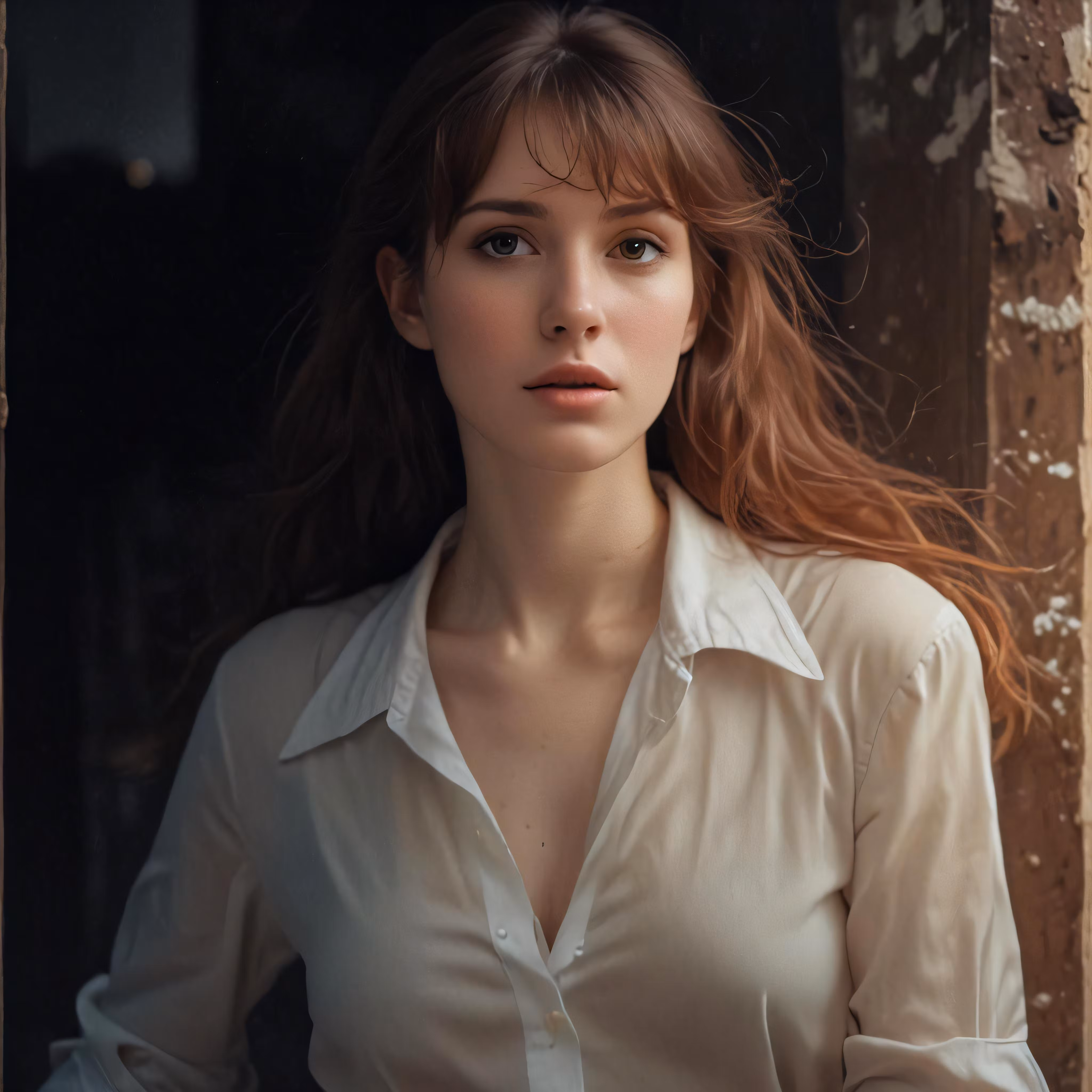 High resolution picture, free to use, a woman in white shirt with red hair