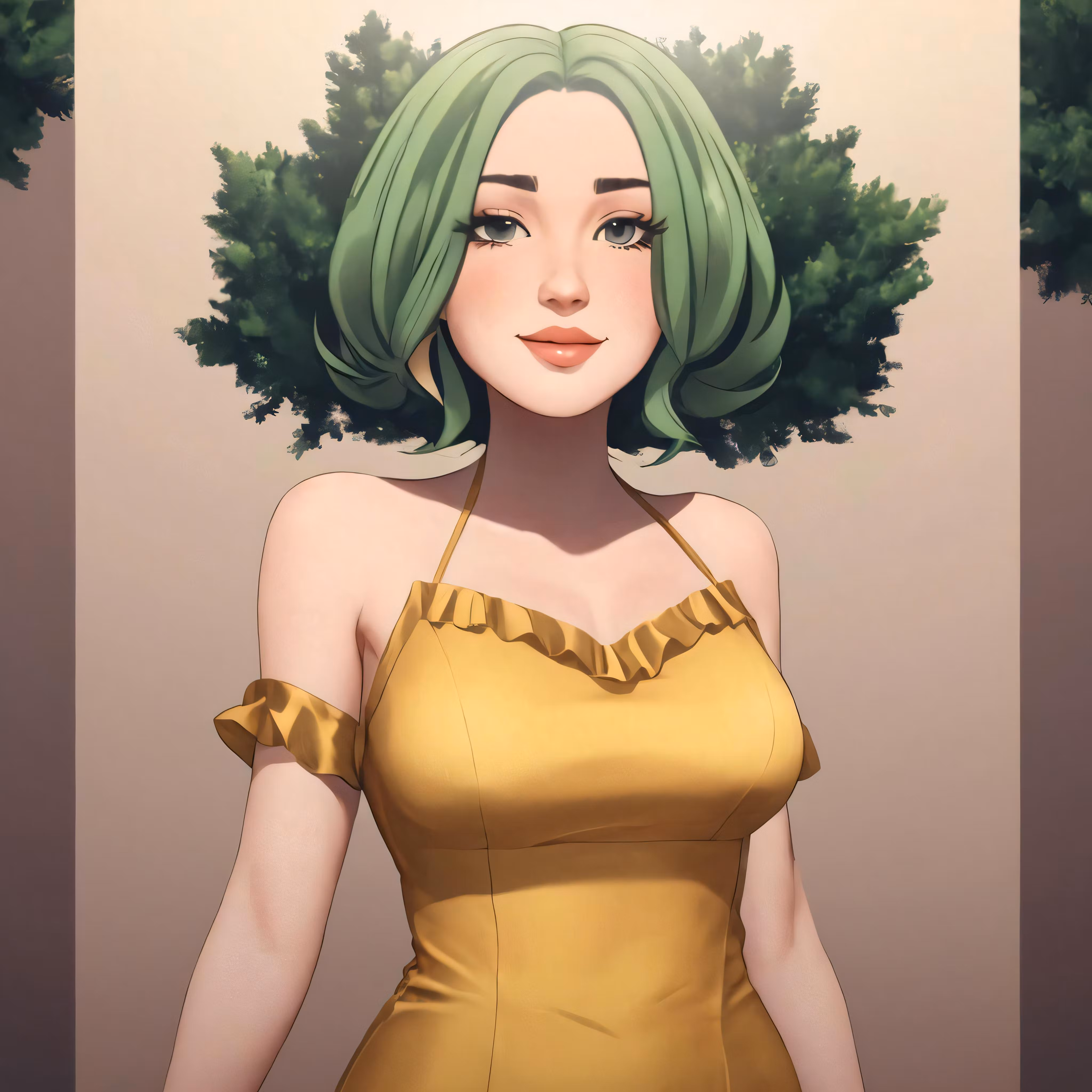High resolution picture, free to use, a woman in yellow dress standing next to a wall